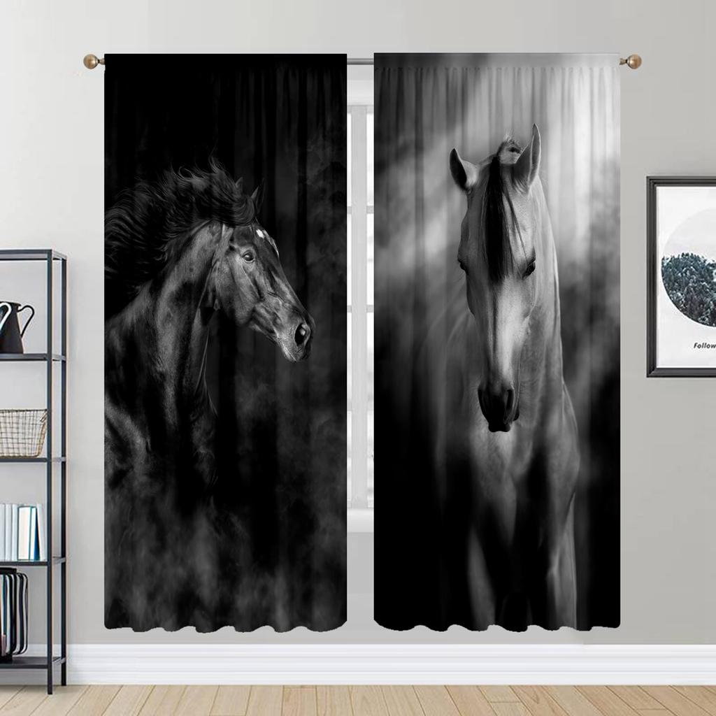 2 шт. Черно-белый Жеребец, Кабинет Кухня Гостиная Комната в общежитии Верх с кулиской Оконные шторы, Спальня — купить товар онлайн с бесплатной доставкой по всему миру!