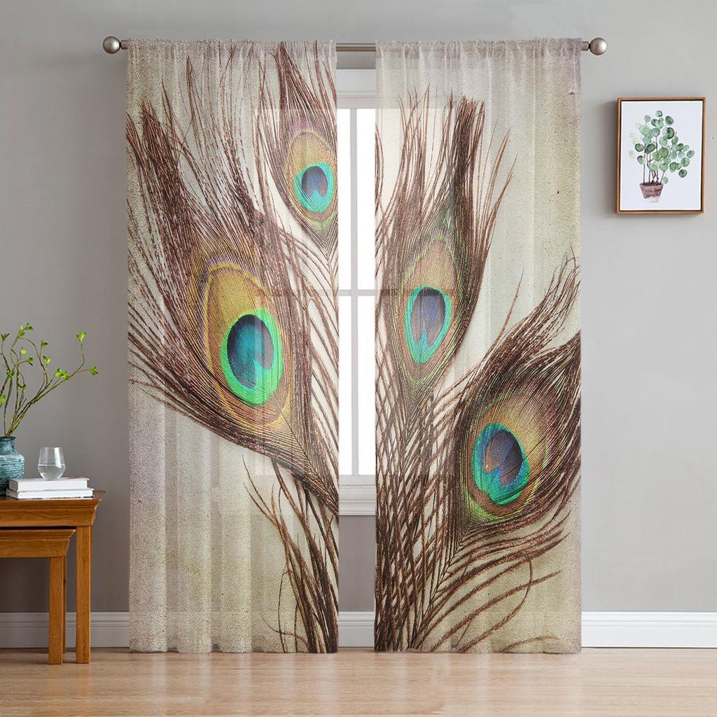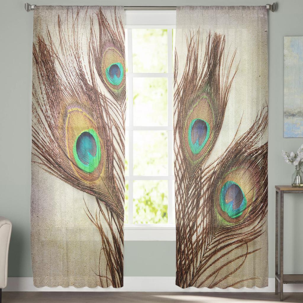 Павлиньи перья Винтажные занавески на окна Тюль для гостиной, спальни, кухни, украшения для окон, шторы