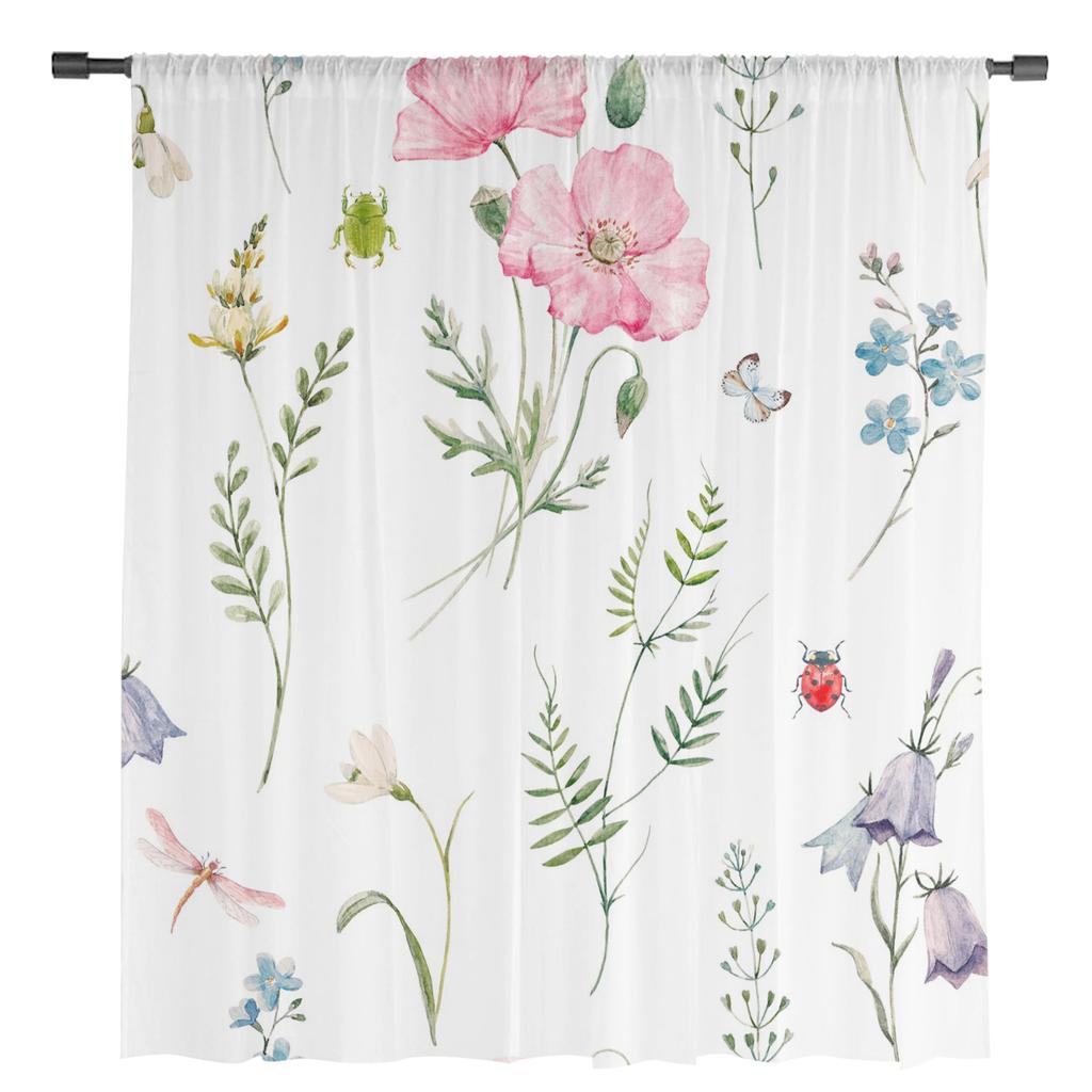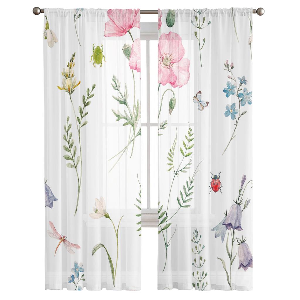 Лепестки цветов, божья коровка, стрекоза, насекомое, прозрачные шторы для гостиной, современные вуалевые шторы, шторы для спальни, тюль, занавески для окон