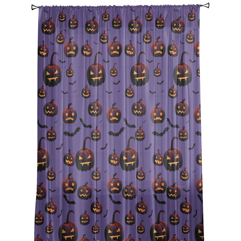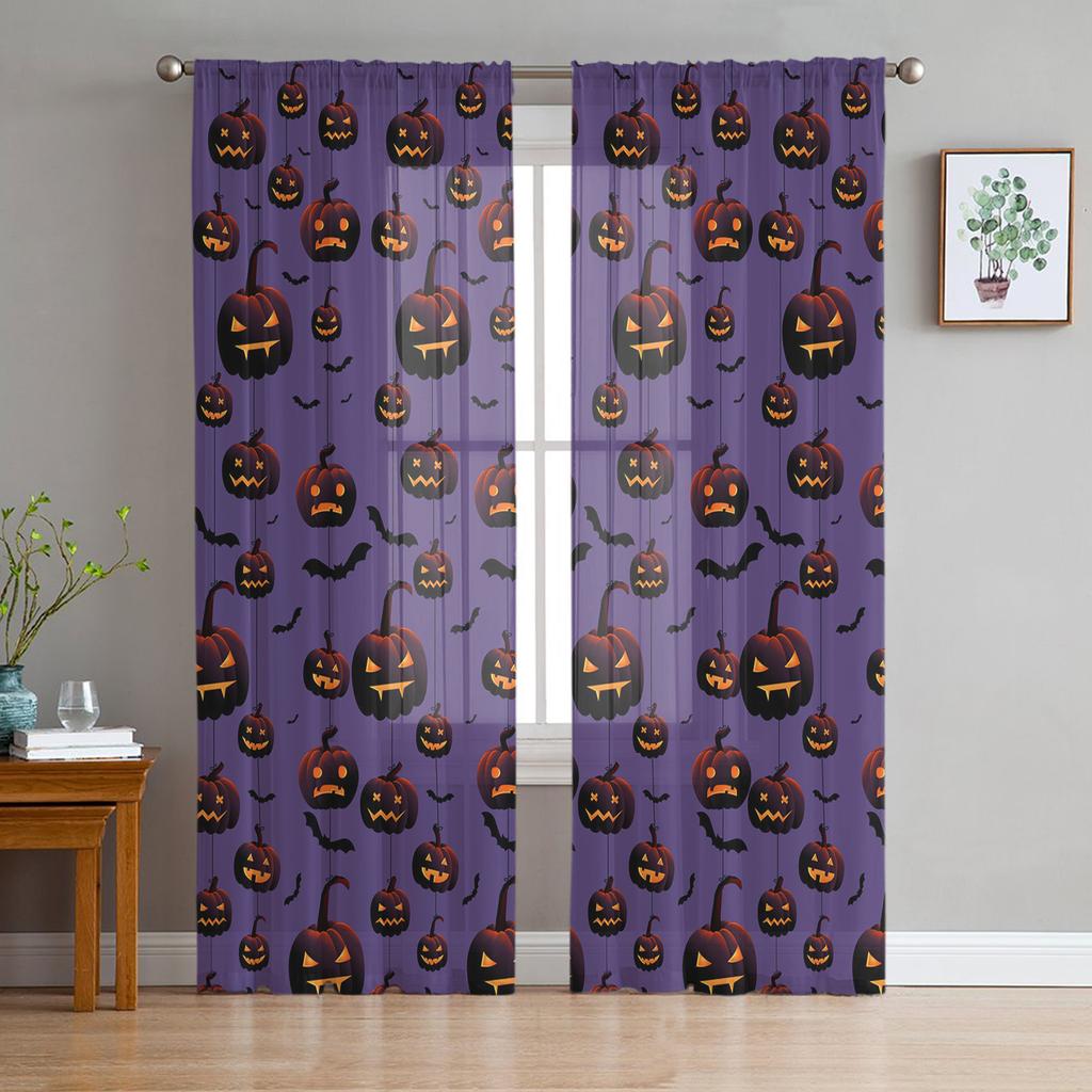 Хэллоуин Тыква Летучая Мышь Фиолетовая Занавеска Для Гостиной Прозрачные Тюлевые Шторы Окно Полупрозрачные Для Спальни Аксессуары Декор