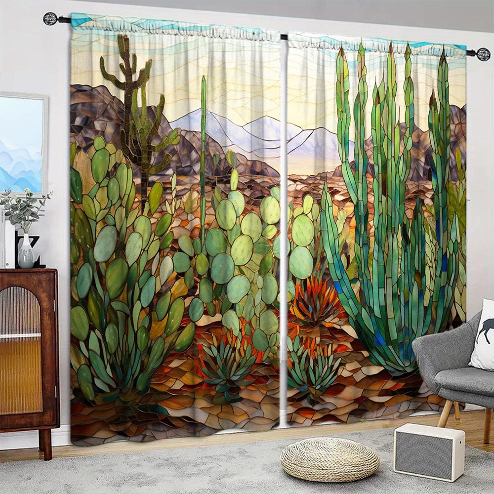 2 шт. занавески с принтом пустынного кактуса для домашнего декора - оконные карманы с карнизом для спальни, офиса, кухни и гостиной