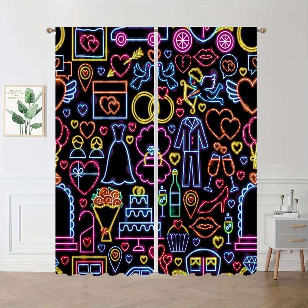 Красочный Принт Сердец Карман для Штанги Занавеска Оформление Окна для Спальни Офиса Кухни Гостиной Кабинета Домашний Декор 2 шт.