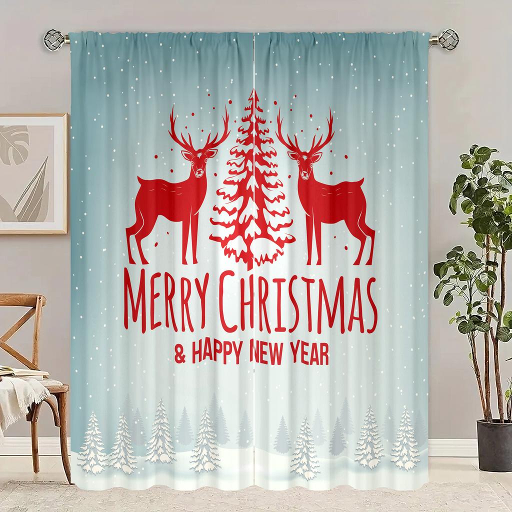 2 шт. - Рождественские шторы с принтом «Лось» - Полиэстер - подходят для спальни, гостиной, кабинета, личного пространства