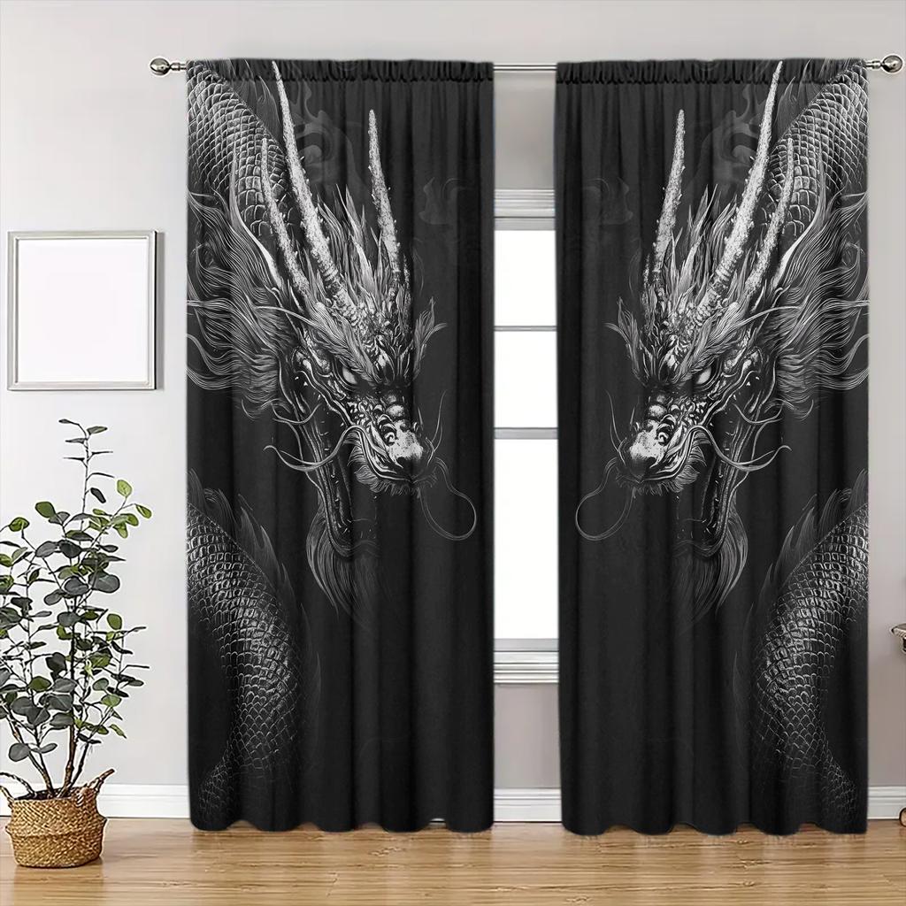 2 шт. Шторы с принтом «Пробуждение и полет дракона» для домашнего декора — оконные карманы с карнизом для спальни, офиса, кухни