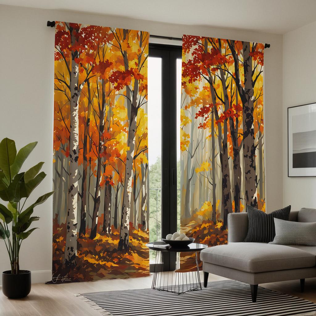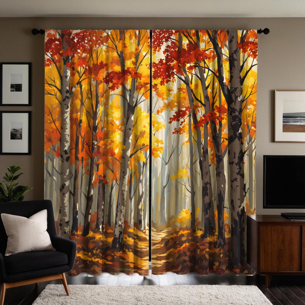 2 штуки штор из клена осеннего леса HD Желтая завязка штора с цифровой печатью Стиль домашнего декора Украсить гостиную спальню