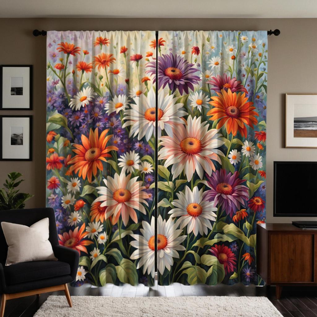 2 шт. HD Маргаритки свежие цветы декоративные занавески Цветная система цифровая печать занавески Украшение дома стиль украшения жизни