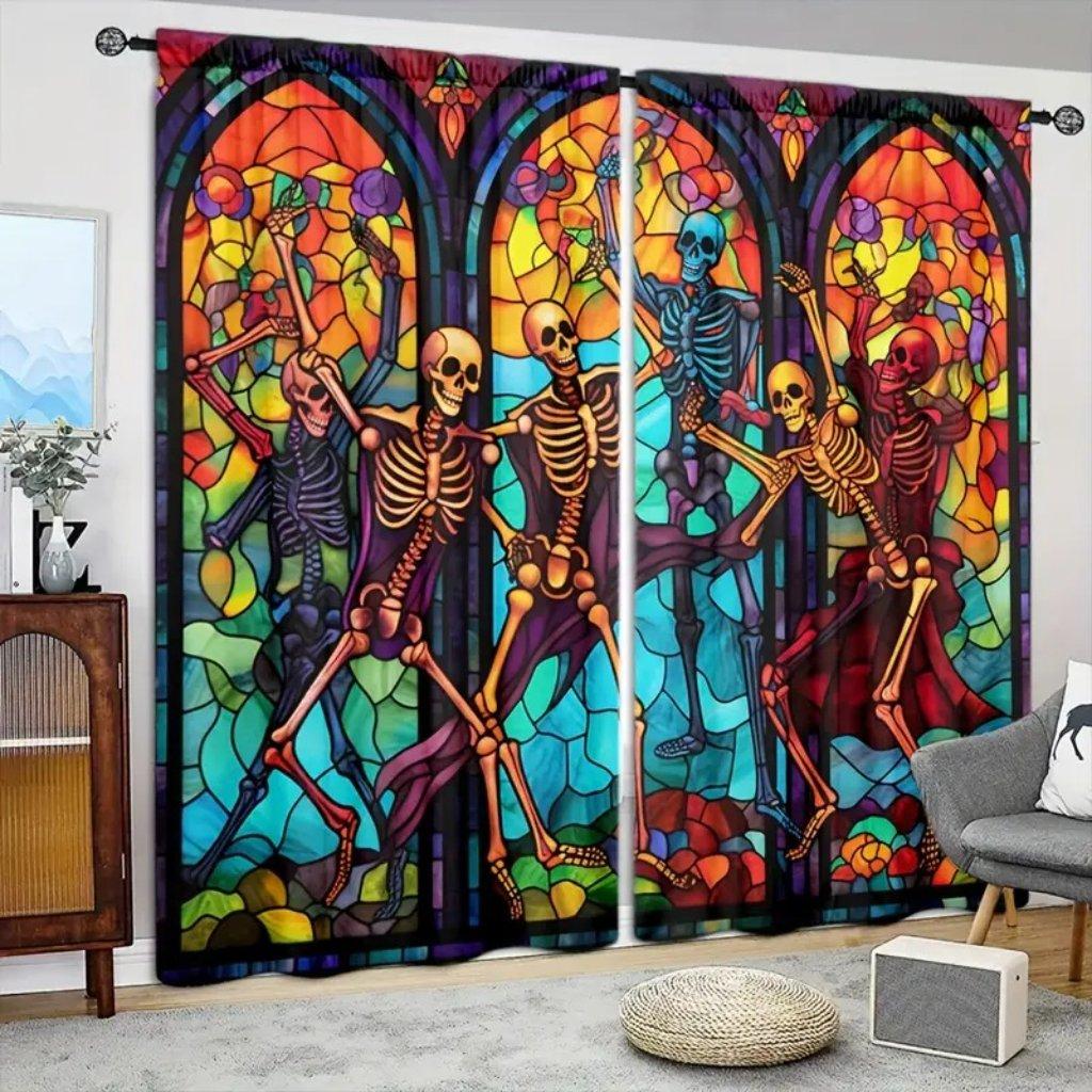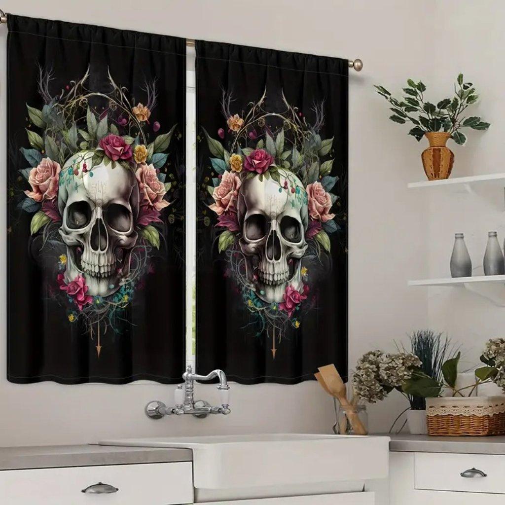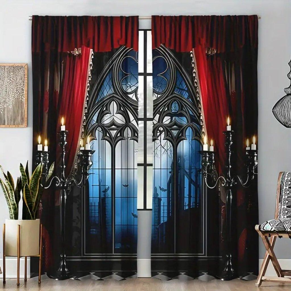 2 шт. оконных штор в готическом стиле - современные тканые полиэстеровые панели, подвесные карманы, полупрозрачные рулонные с тиснением