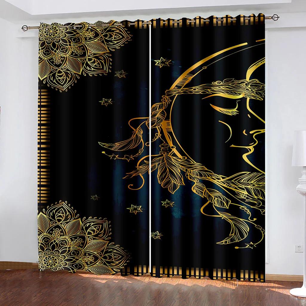 Роскошные золотые таинственные символы гадания шторы для гостиной дизайн спальни кухня украшения оконные шторы Cortina 3D
