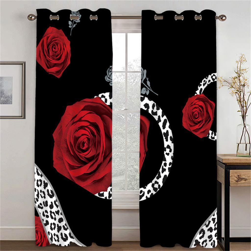 Красная роза цветок леопардовый принт 3D дизайн роскошные оконные шторы для девочек гостиная спальня домашний декор 2 шт бесплатная доставка