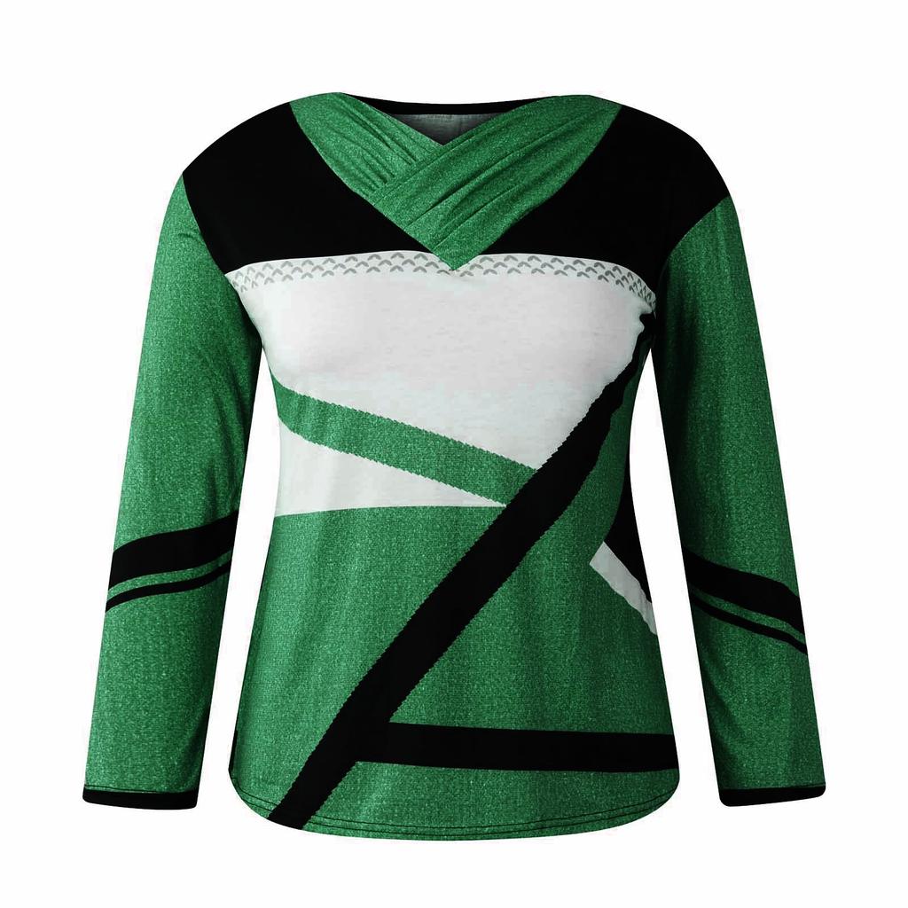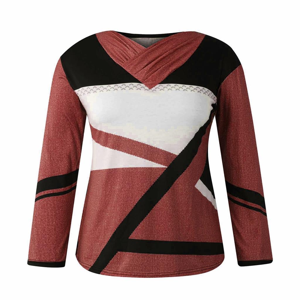 Женские топы Нарядные повседневные рубашки с длинными рукавами с перекрестным V-образным вырезом и цветными блоками Повседневная туника Блузки Топы