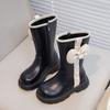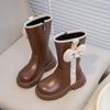 Новые низкие кожаные ботинки на мягкой подошве для девочек, ботильоны с бантом