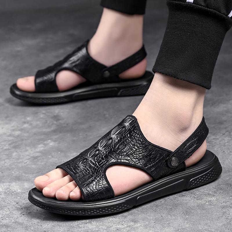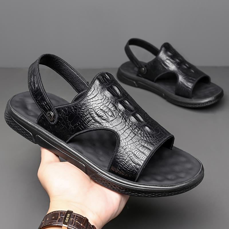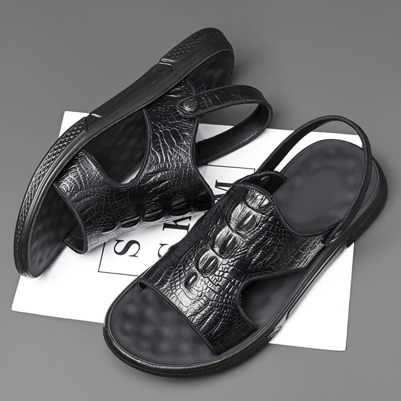 Летние мужские сандалии кожаные сандалии классические сандалии из крокодиловой кожи тапочки мягкие уличные кроссовки пляжные резиновые треккинговые сандалии