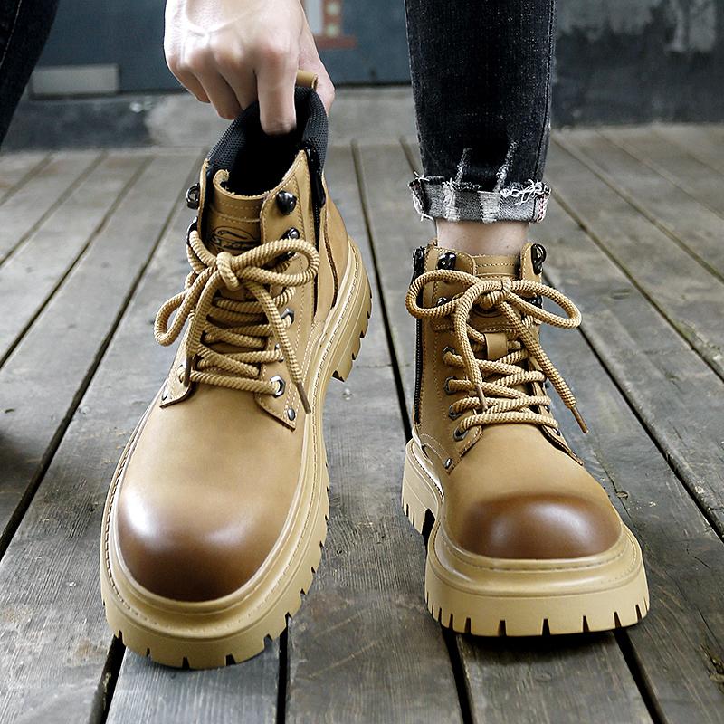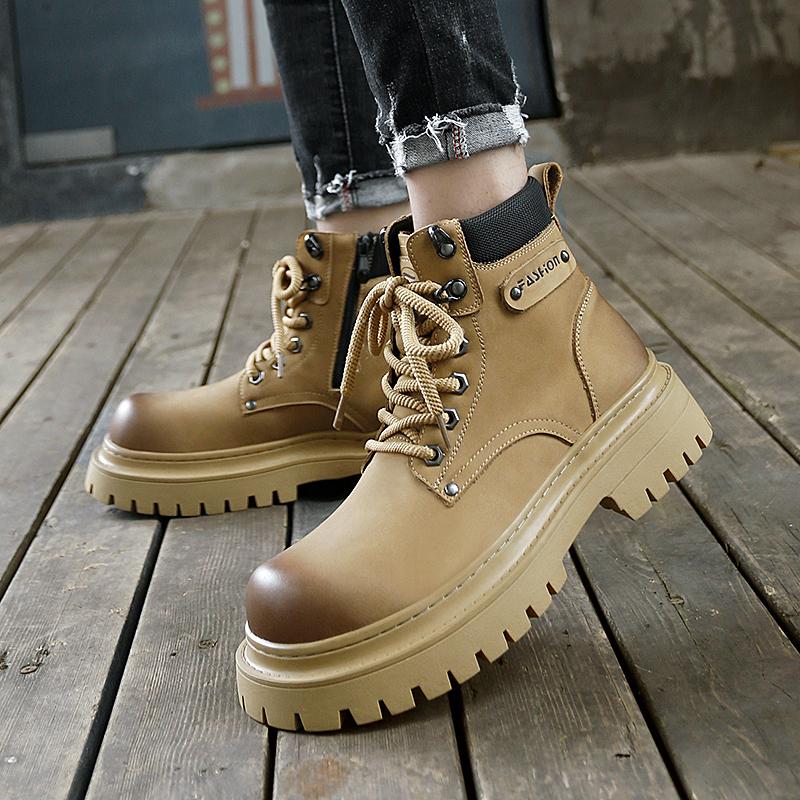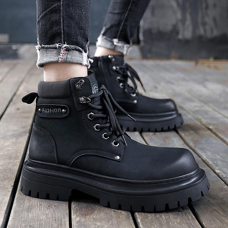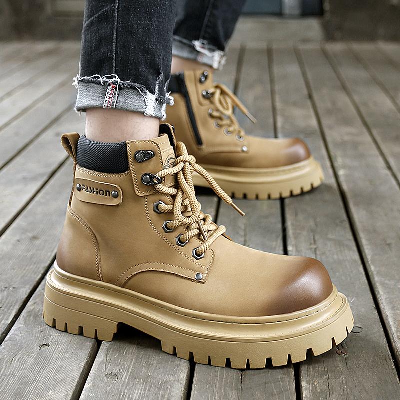 Роскошные брендовые мужские модные рабочие ботинки для улицы, осенние мужские удобные повседневные ботинки с боковой молнией и толстой подошвой большого размера