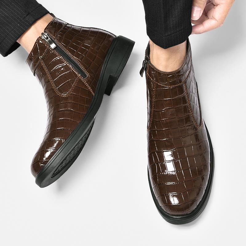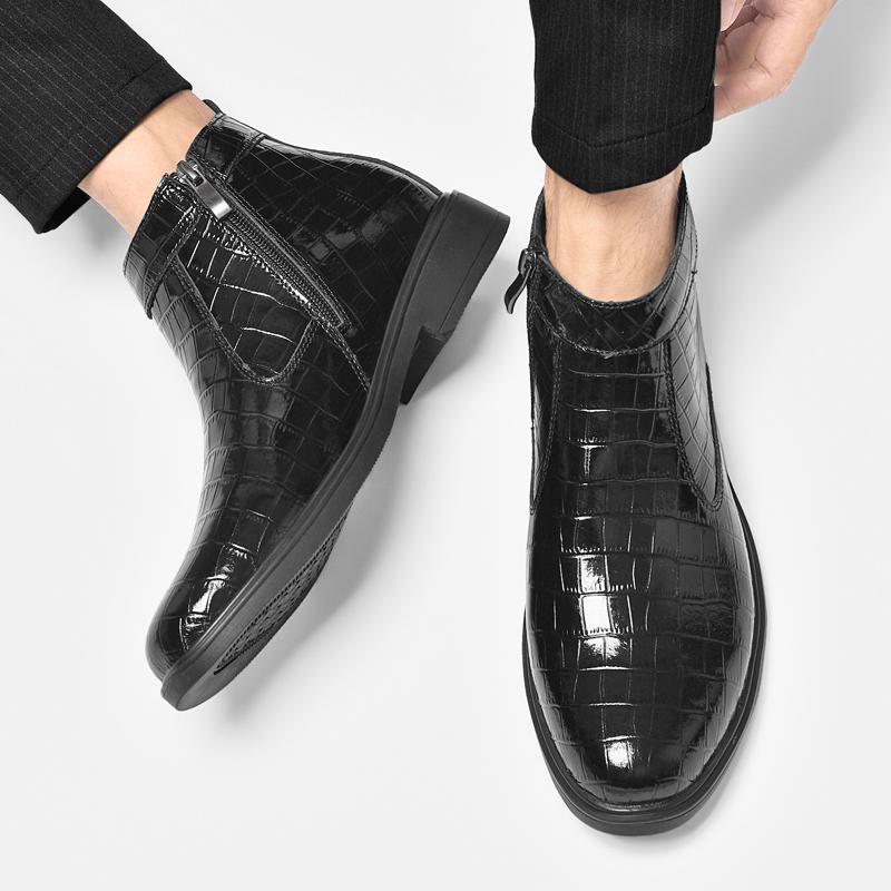 2024 Брендовая мода осень-зима мужские повседневные высокие кожаные туфли новые мужские заостренные боковые молнии удобные теплые хлопковые туфли