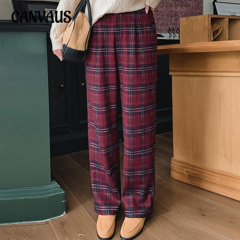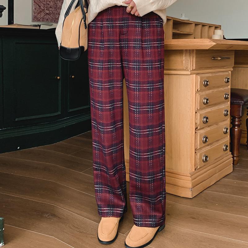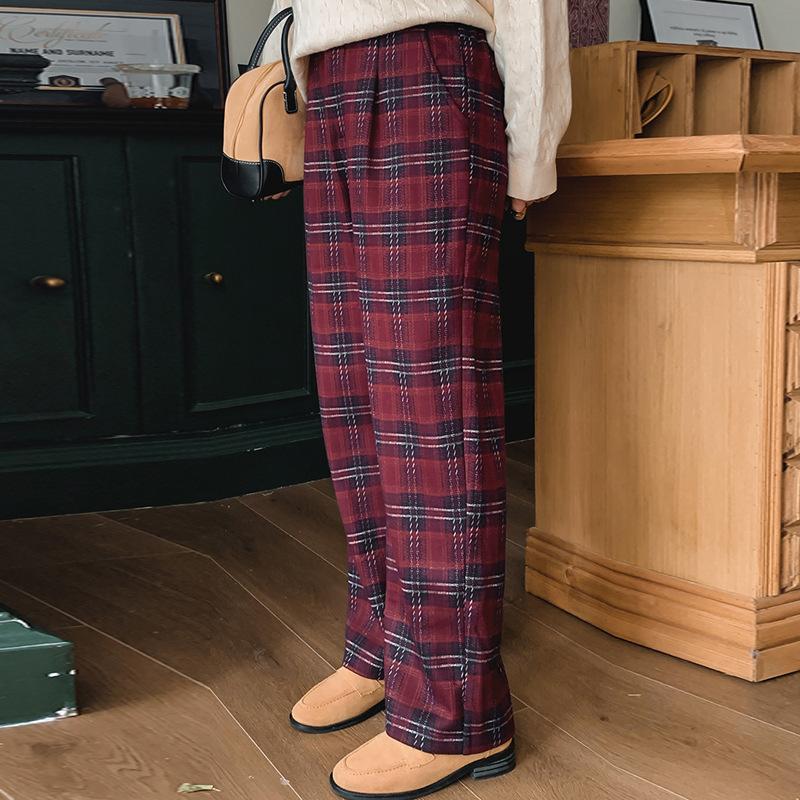 Женские брюки больших размеров в винтажную клетку, повседневные брюки, свободные широкие брюки на осень и зиму