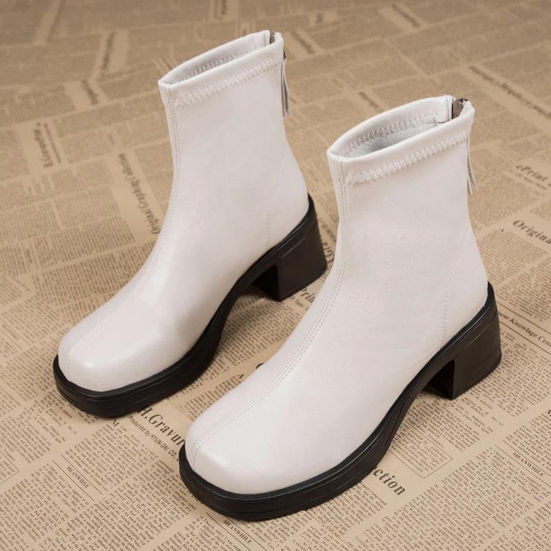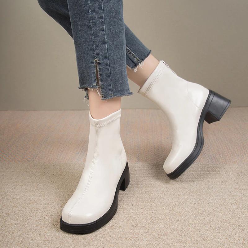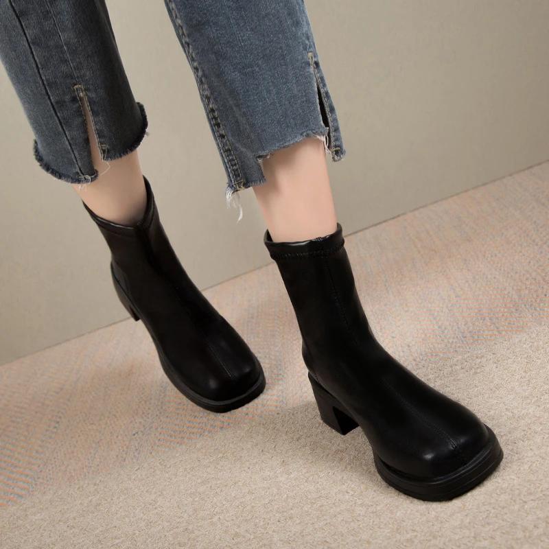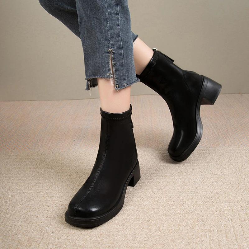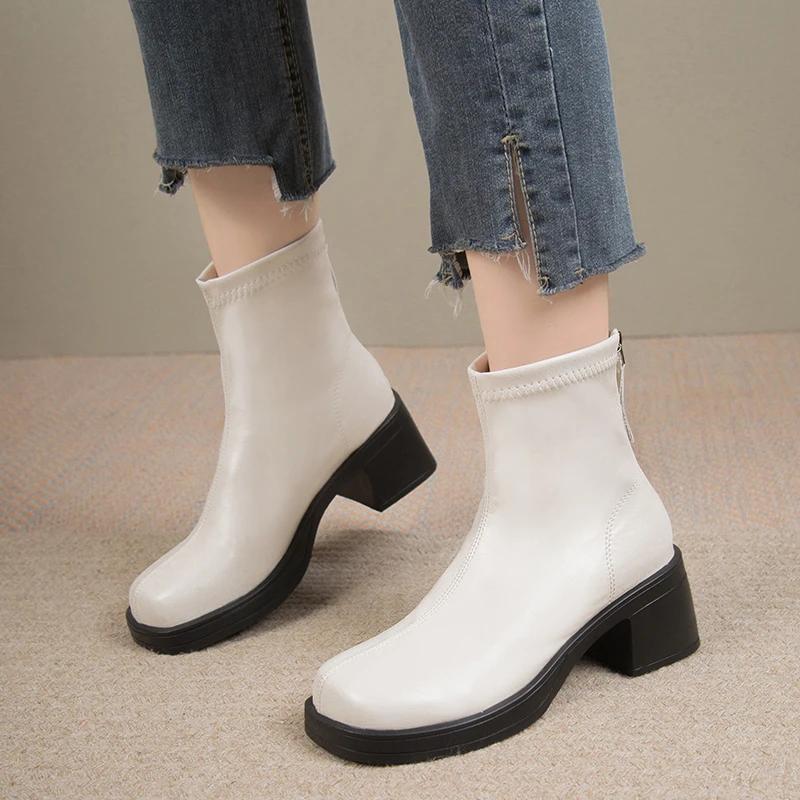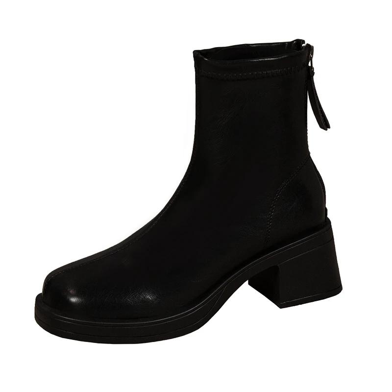Мода 2024 года, высококачественная обувь для женщин, женские ботильоны, модные женские туфли с застежкой-молнией сзади для офиса и карьеры, горячая распродажа, квадратный сплошной носок, каблуки для женщин