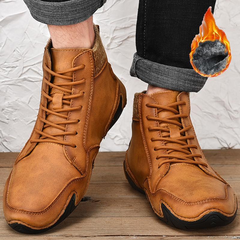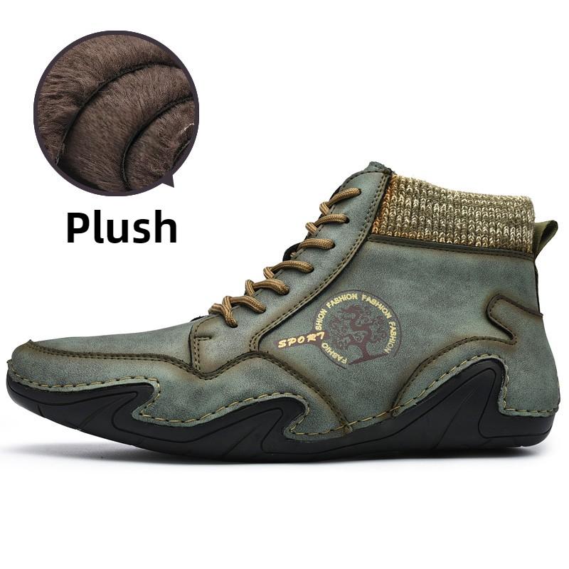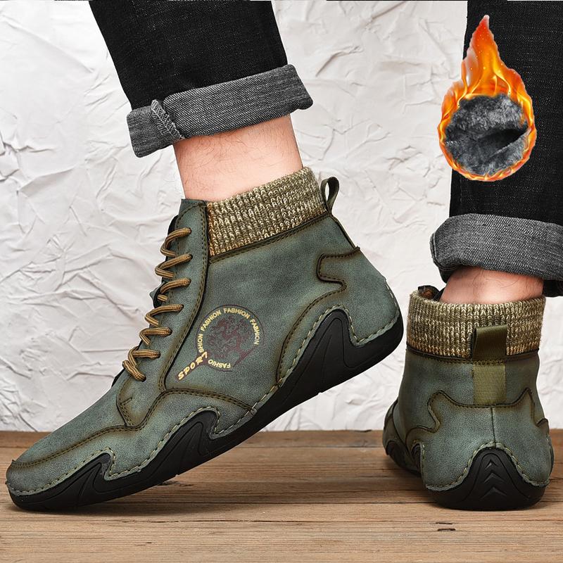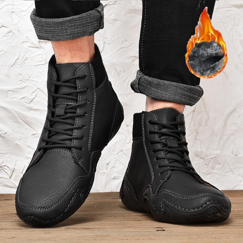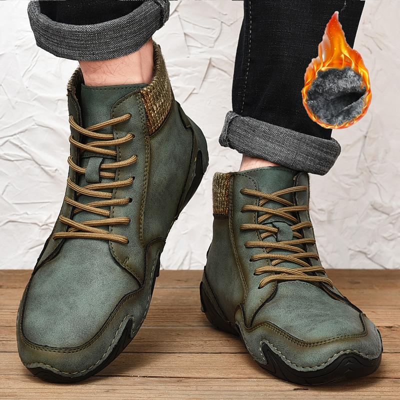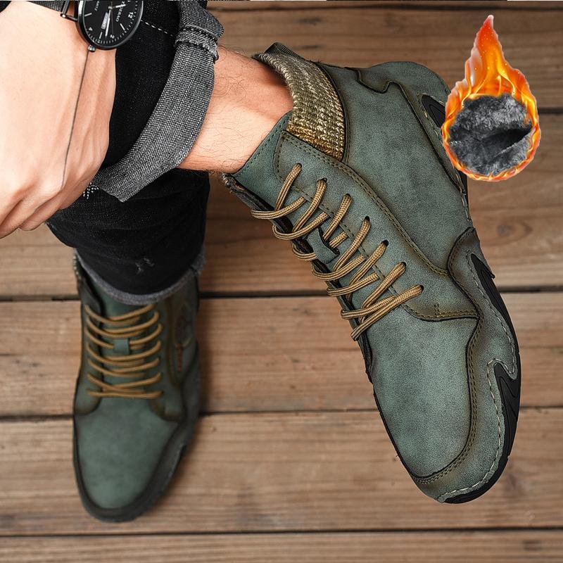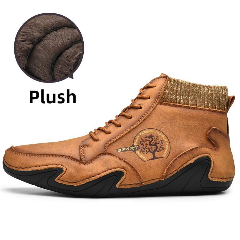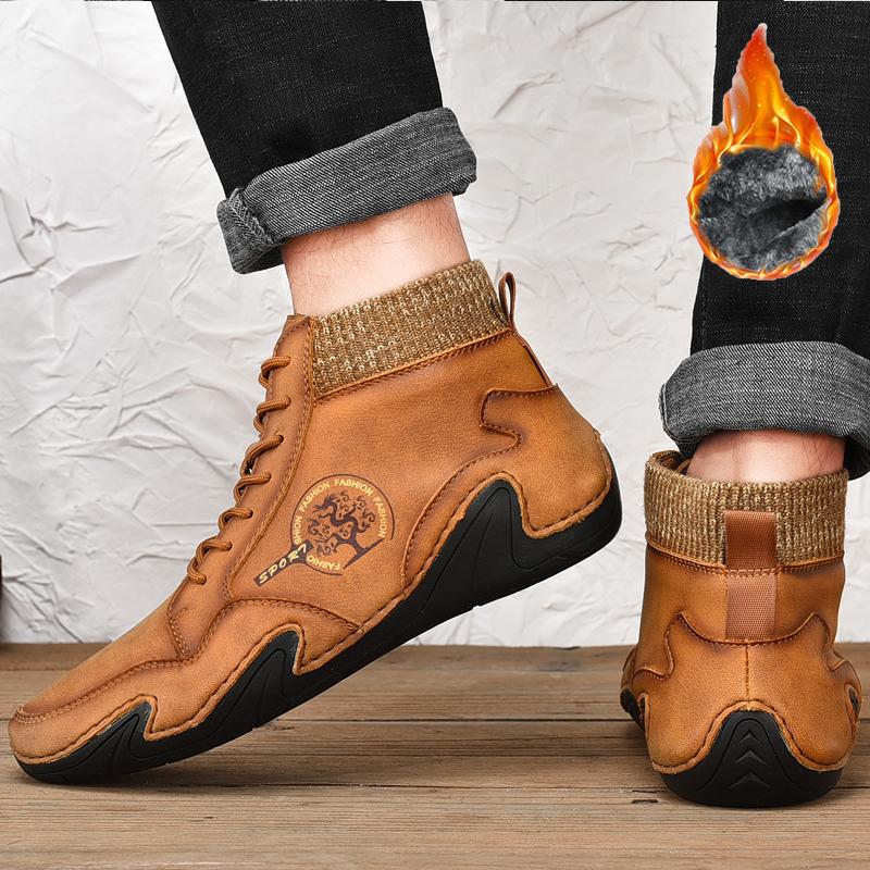Зимние мужские высокие повседневные туфли ручной работы из искусственного плюша большого размера с резиновой мягкой подошвой для вождения автомобиля