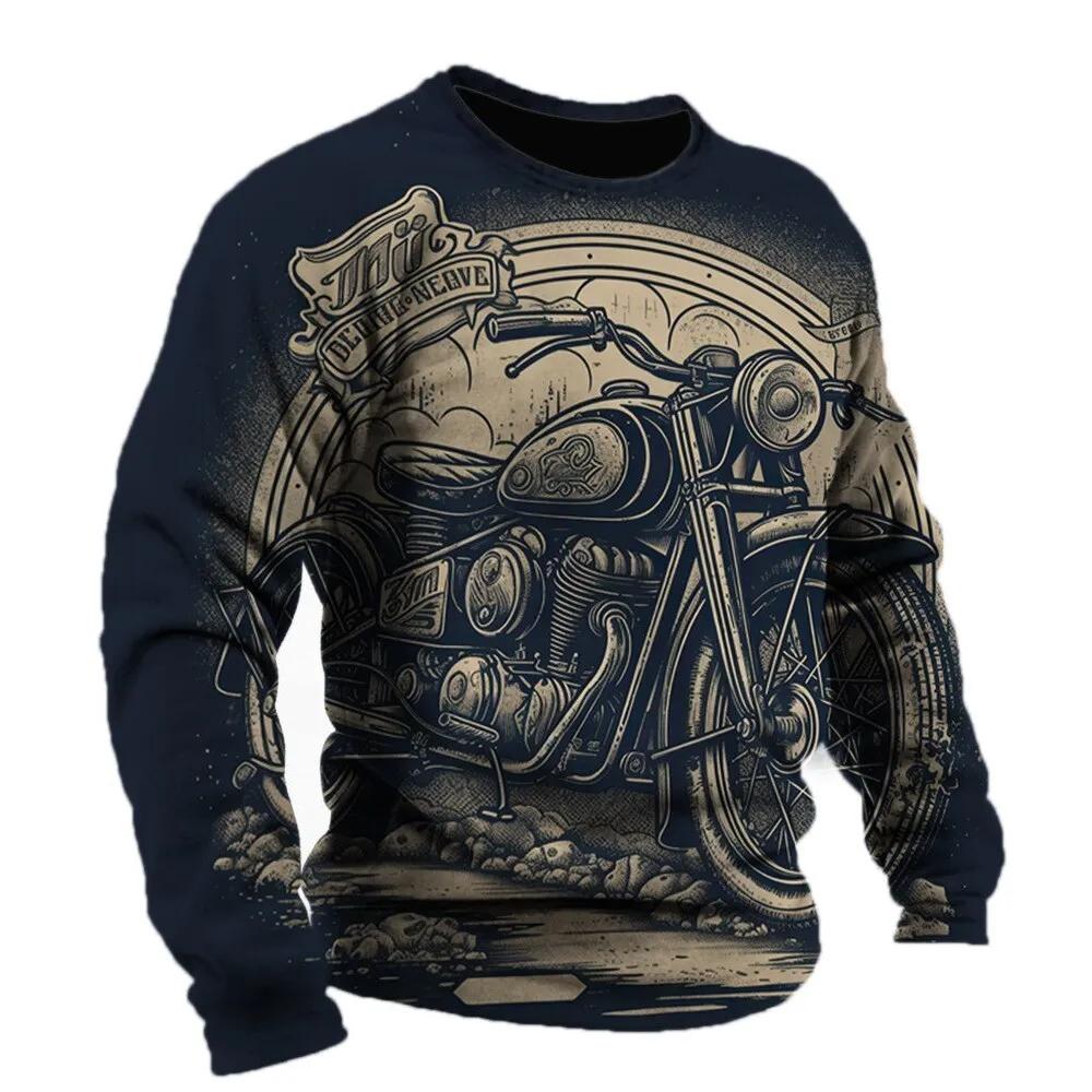 2024 Винтажная мужская футболка с рисунком мотоцикла Футболки с длинным рукавом с 3D-принтом Одежда Графическая уличная одежда больших размеров Мужская одежда