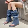 Модные женские ковбойские сапоги до колена, сандалии, туфли на плоской подошве с застежкой-молнией, осень 2024, новые дизайнерские туфли для ходьбы, удобный бренд Mujer Zapatos