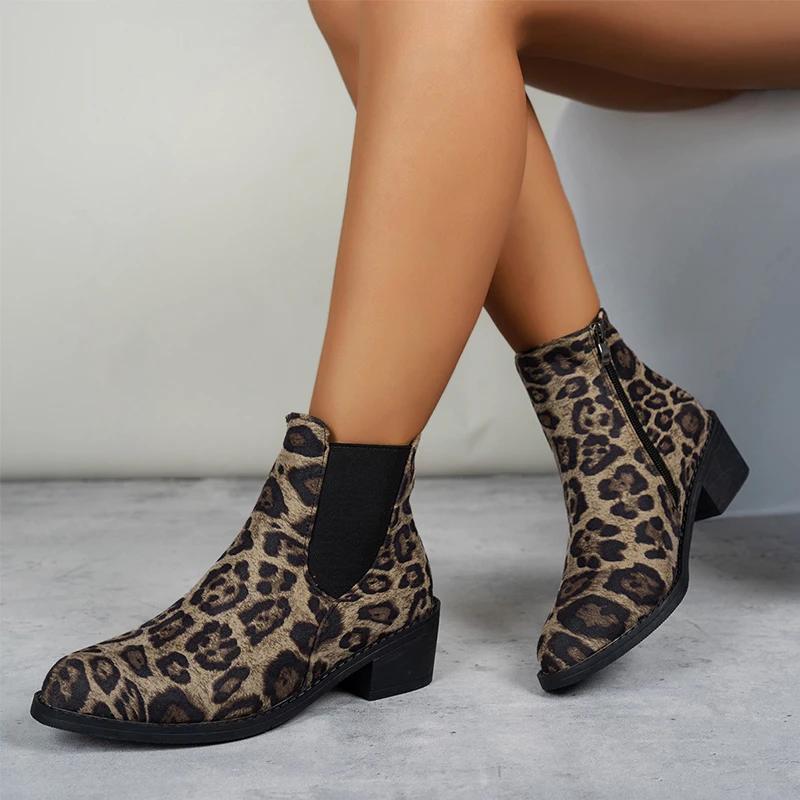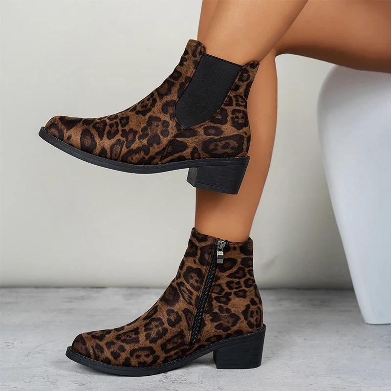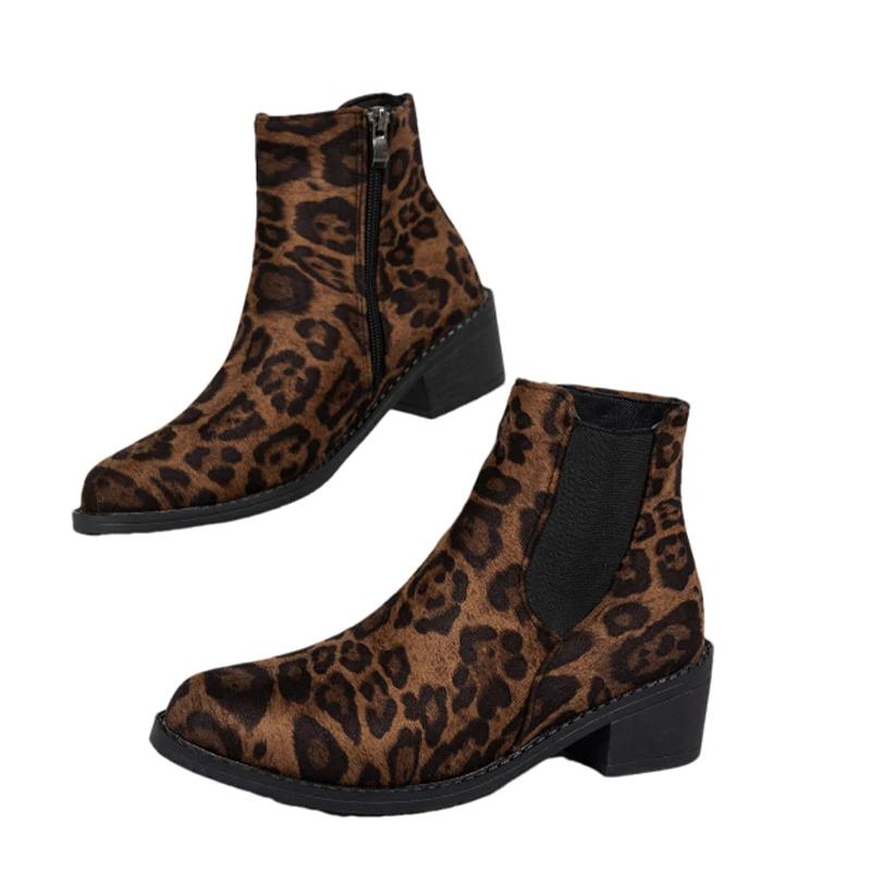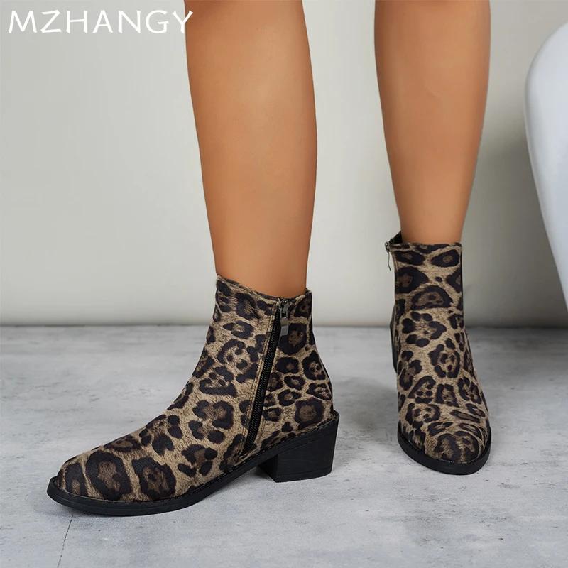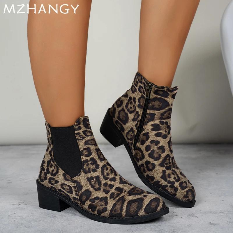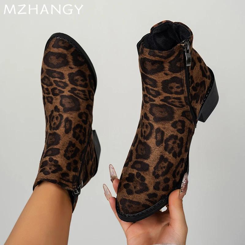 Модные женские ботильоны с леопардовым принтом, замшевые массивные туфли для женщин 2025 года, модные зимние удобные новые ботинки на низком каблуке в готическом стиле для ходьбы, зимние ботинки Mujer