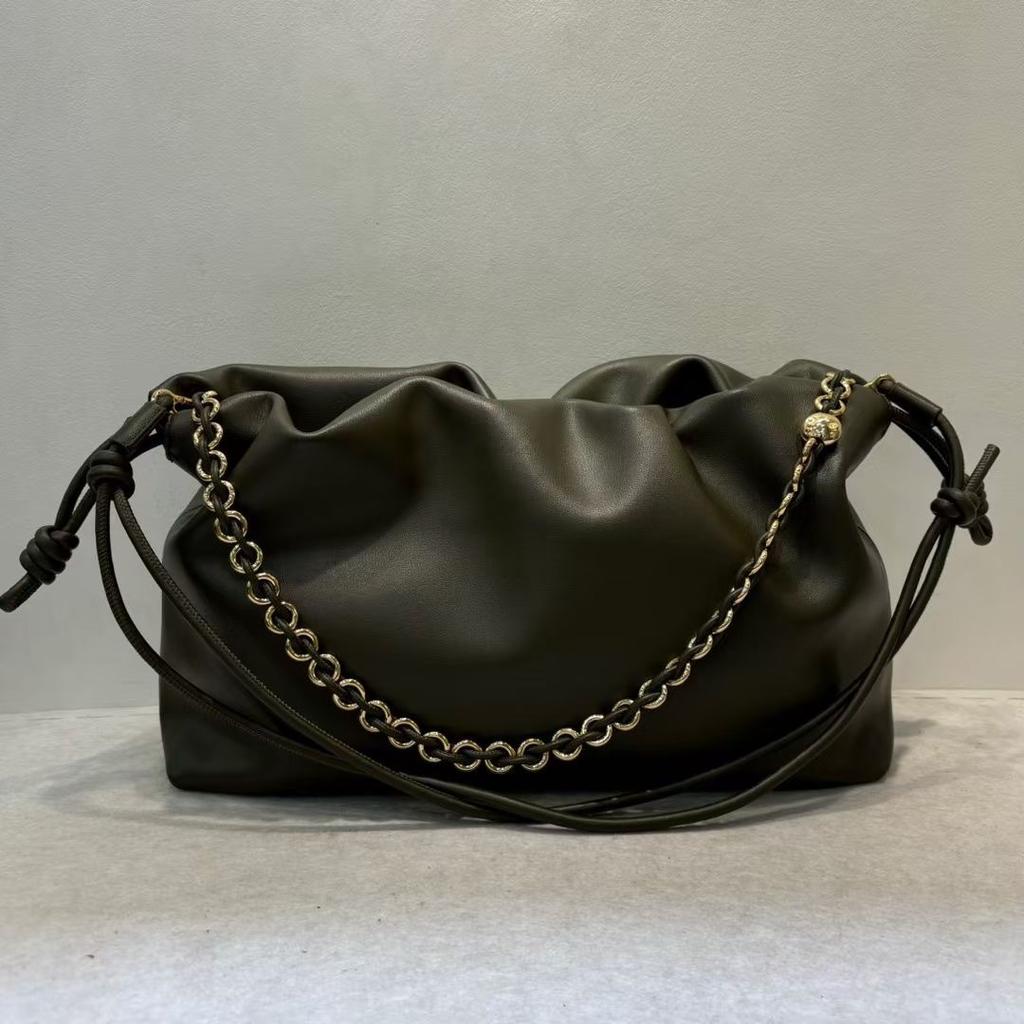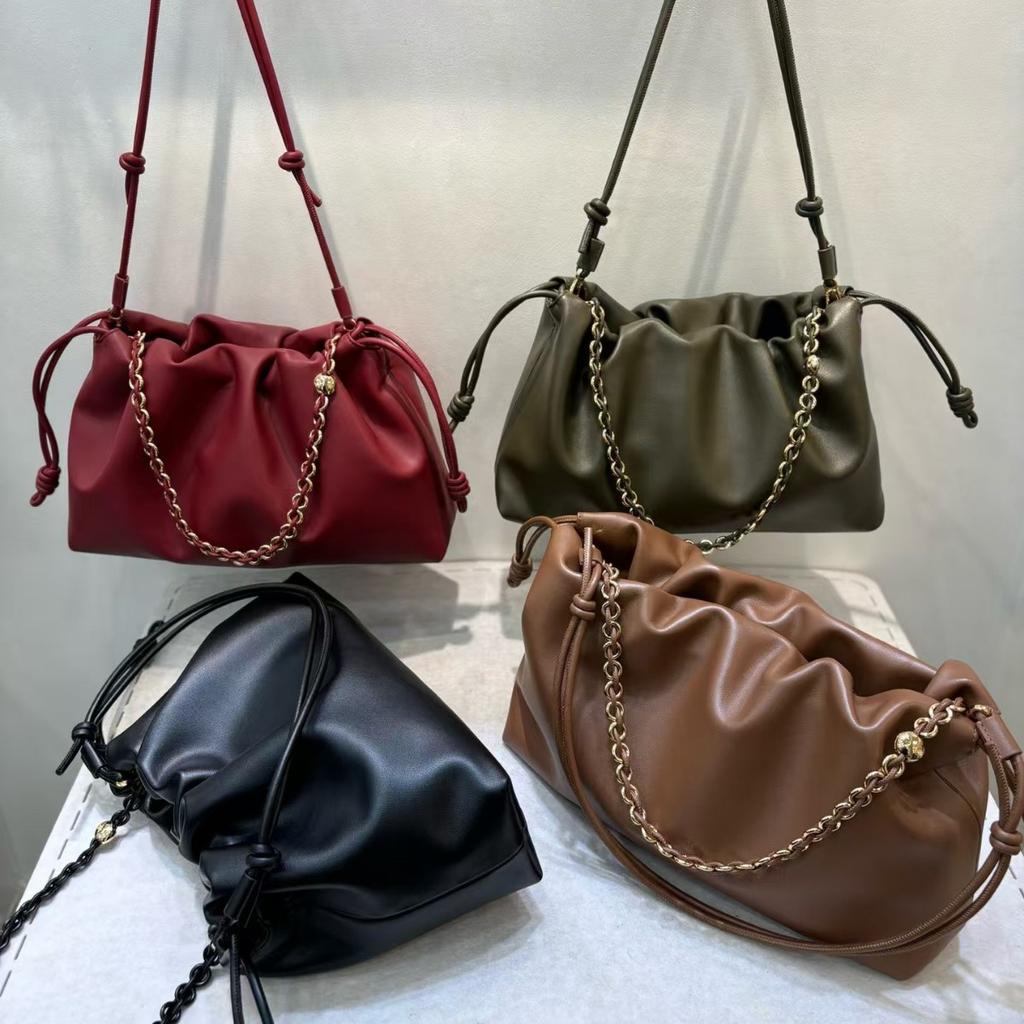 Кожаная плиссированная сумка-облако, новая китайская сумка на удачу со шнурком, модная сумка на цепочке через подмышку, сумка через плечо на одно плечо