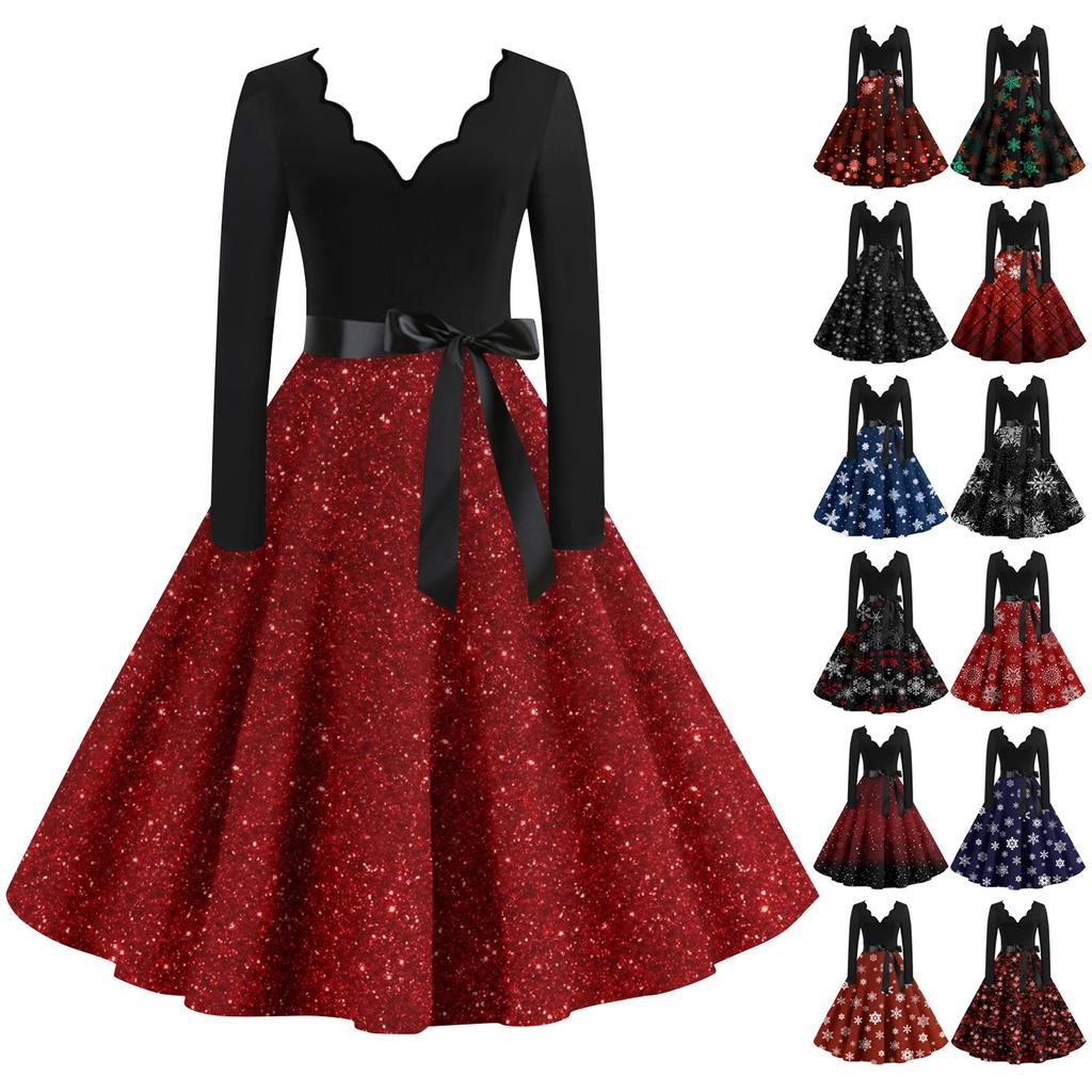 Женские повседневные модные длинные платья с рождественским графическим принтом и длинными рукавами в винтажном стиле — купить товар онлайн с бесплатной доставкой по всему миру!