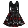 Женские повседневные модные длинные платья с рождественским графическим принтом и длинными рукавами в винтажном стиле