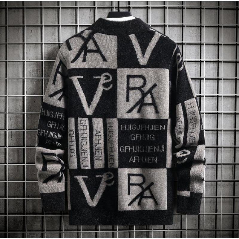 Мужской вязаный свитер в полоску, пуловеры с принтом, круглый вырез, свитер, повседневная мужская одежда на осень/зиму