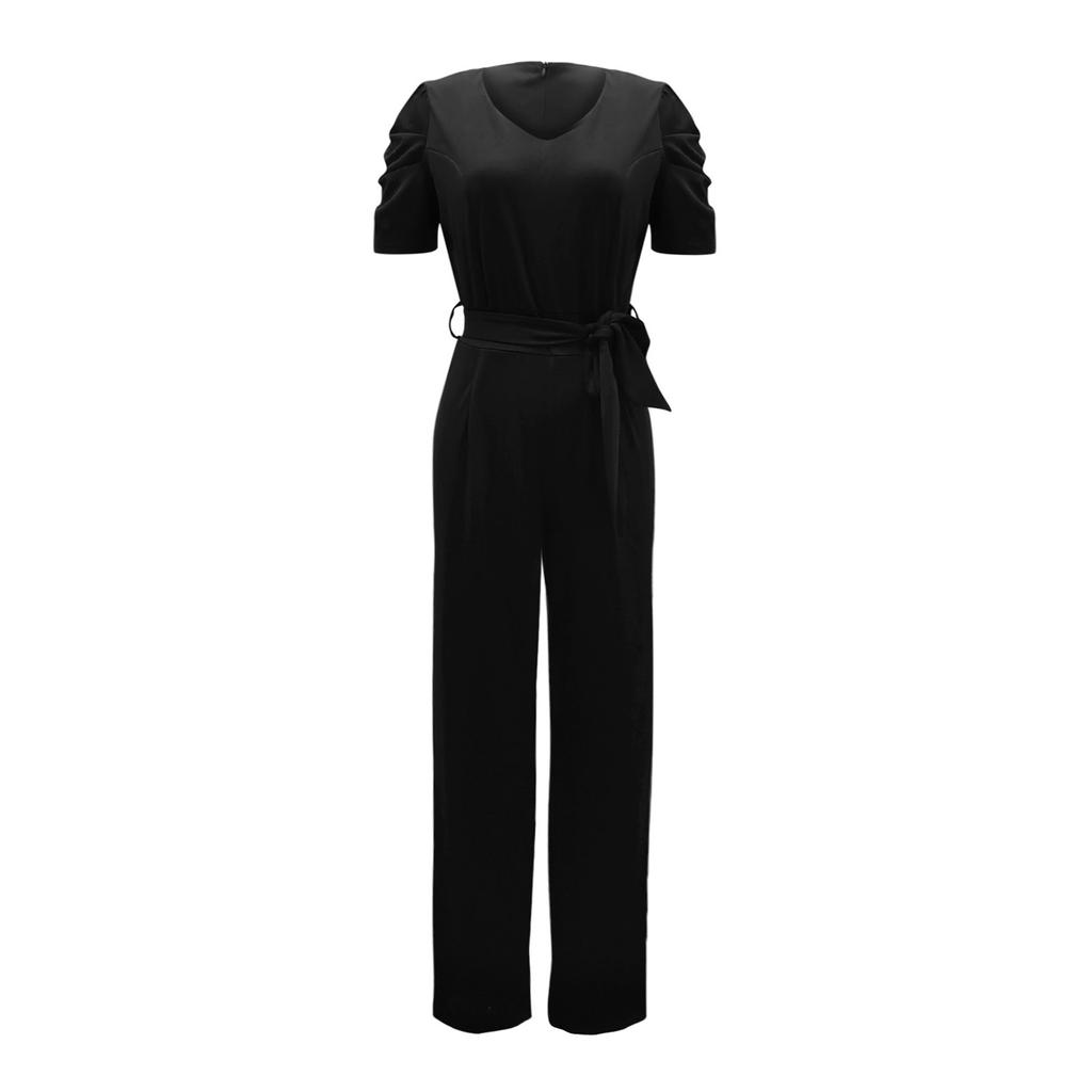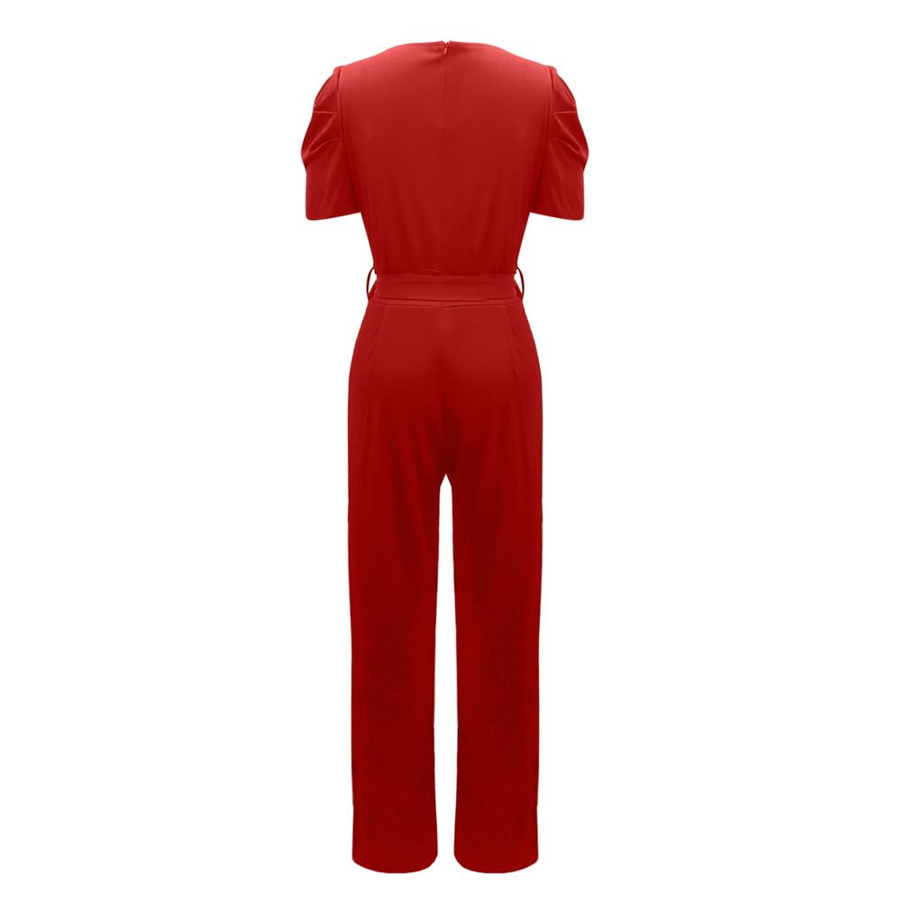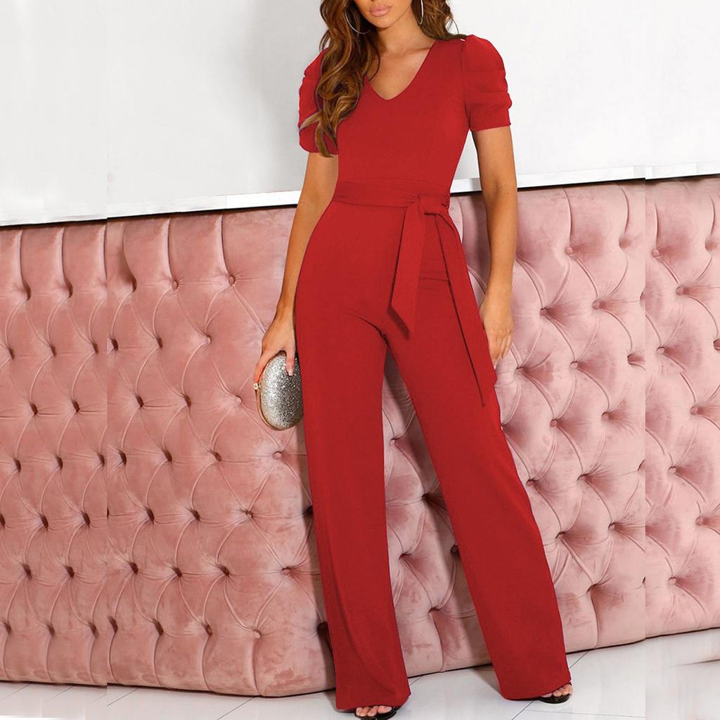 Женский однотонный комбинезон с v-образным вырезом и короткими рукавами, широкие брюки с ремнем на талии