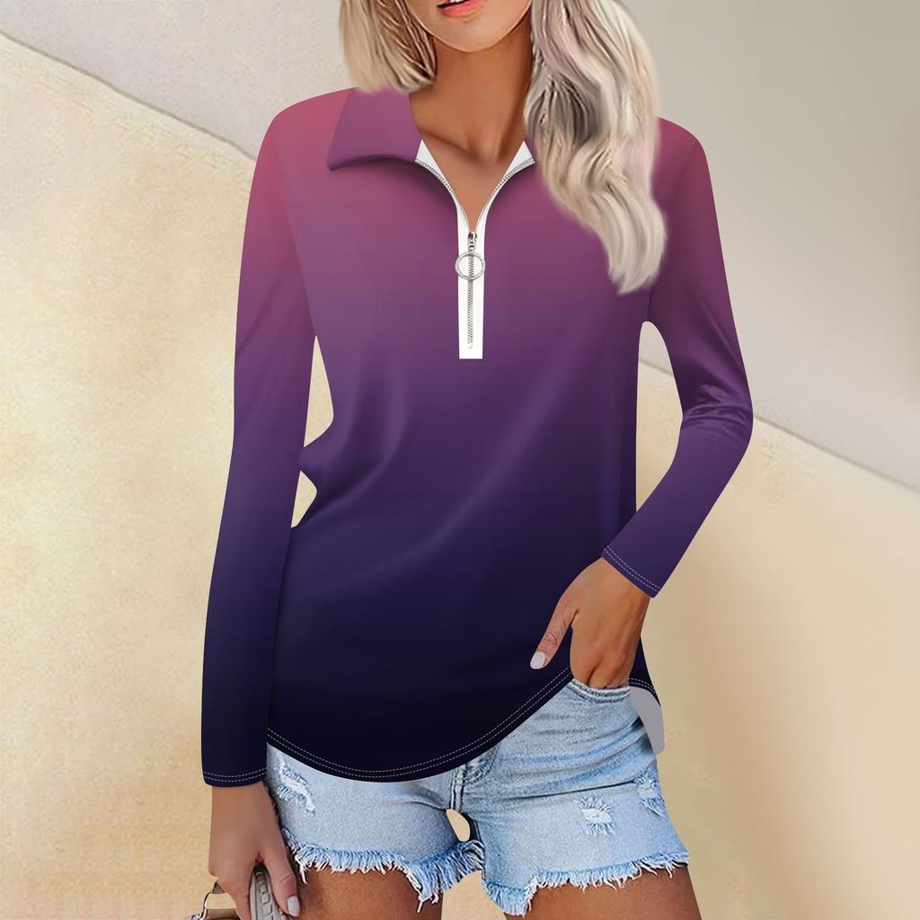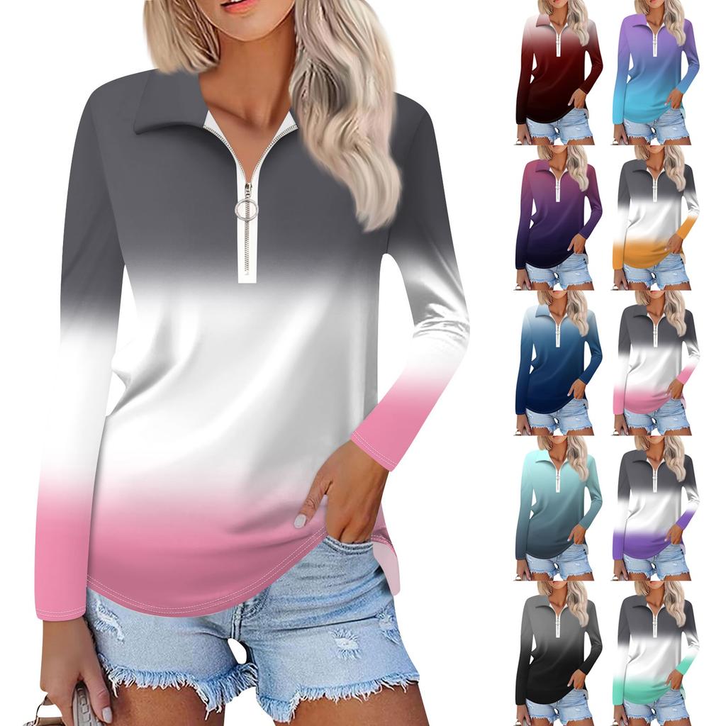 Женская весенняя и модная повседневная рубашка с принтом на молнии с V-образным вырезом и длинным рукавом