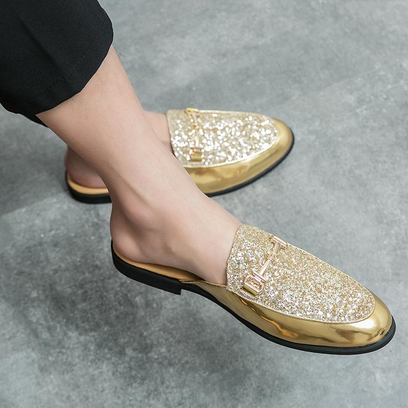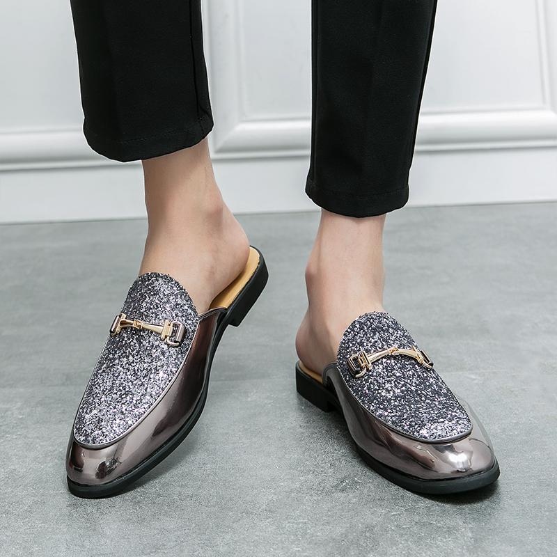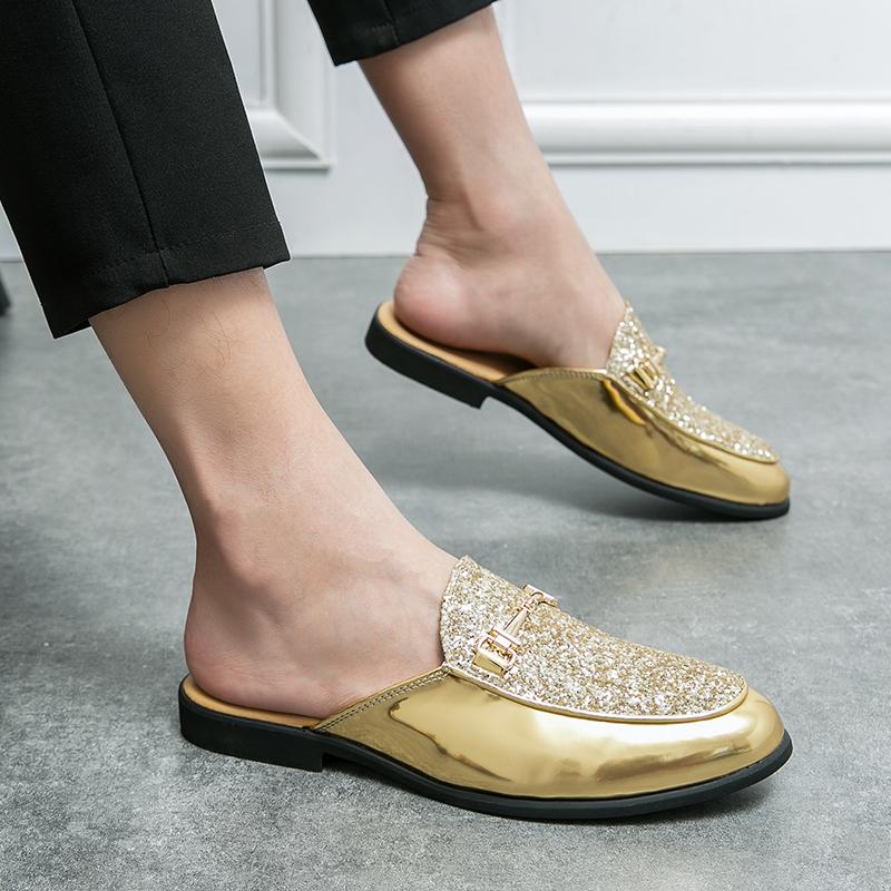 Модные летние мужские тапочки, блестящие уличные туфли для ходьбы, повседневные сандалии на плоской подошве, пляжная обувь, модные мужские туфли для вечеринок