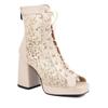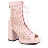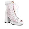 Модные летние ботинки женские танцевальные туфли сексуальные ботильоны с открытым носком сетчатые черные белые розовые высокие каблуки на шнуровке вечерние туфли женские большие размеры