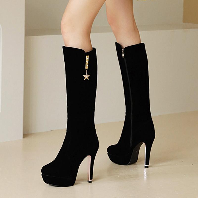 Модные женские высокие красные сапоги 2024 года, зимние сапоги на платформе и каблуке, высокие сапоги до колена, черные, большого размера 45 48, теплая обувь для женщин