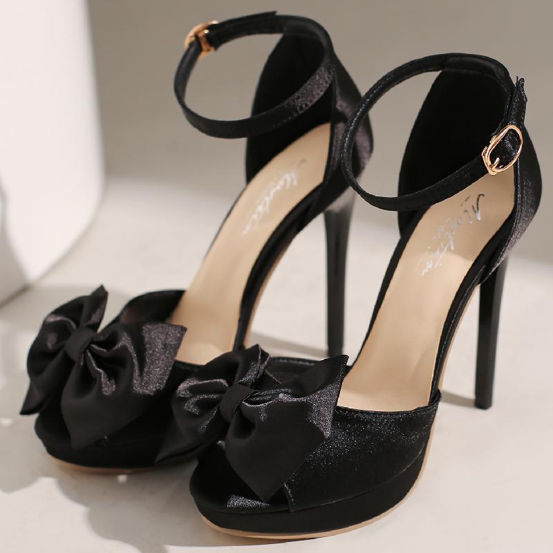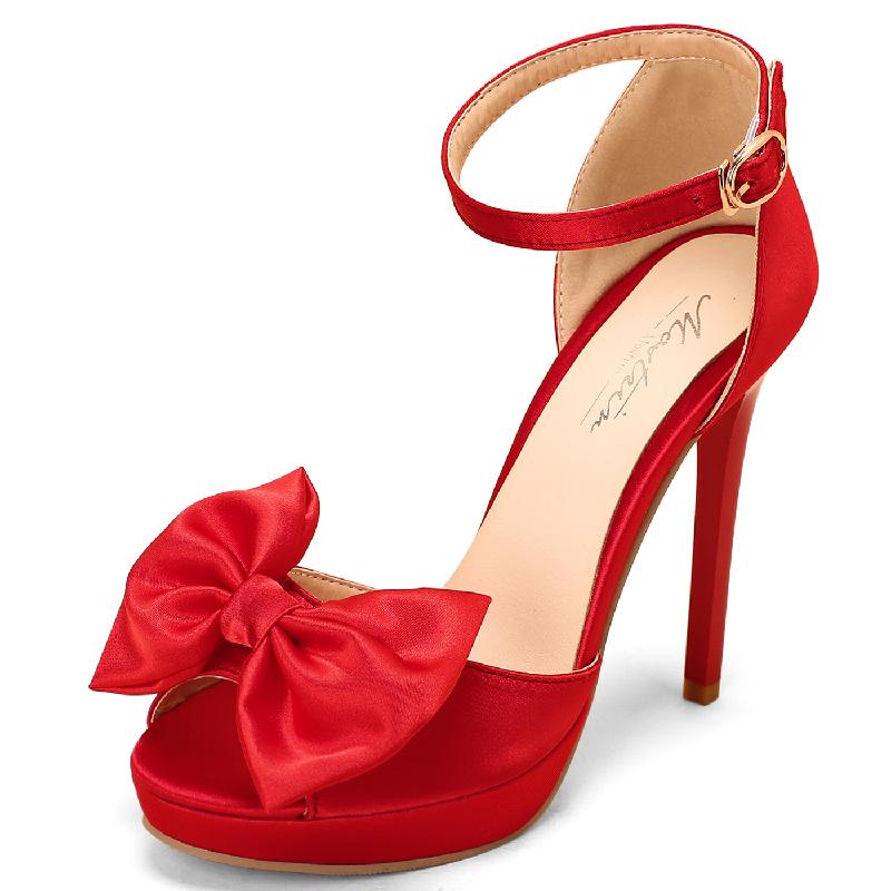 Модные летние туфли для женщин Босоножки на высоком каблуке на платформе с ремешками на щиколотке из шелка с бантом Красные туфли для вечеринки и свадьбы Женские милые туфли с бантом