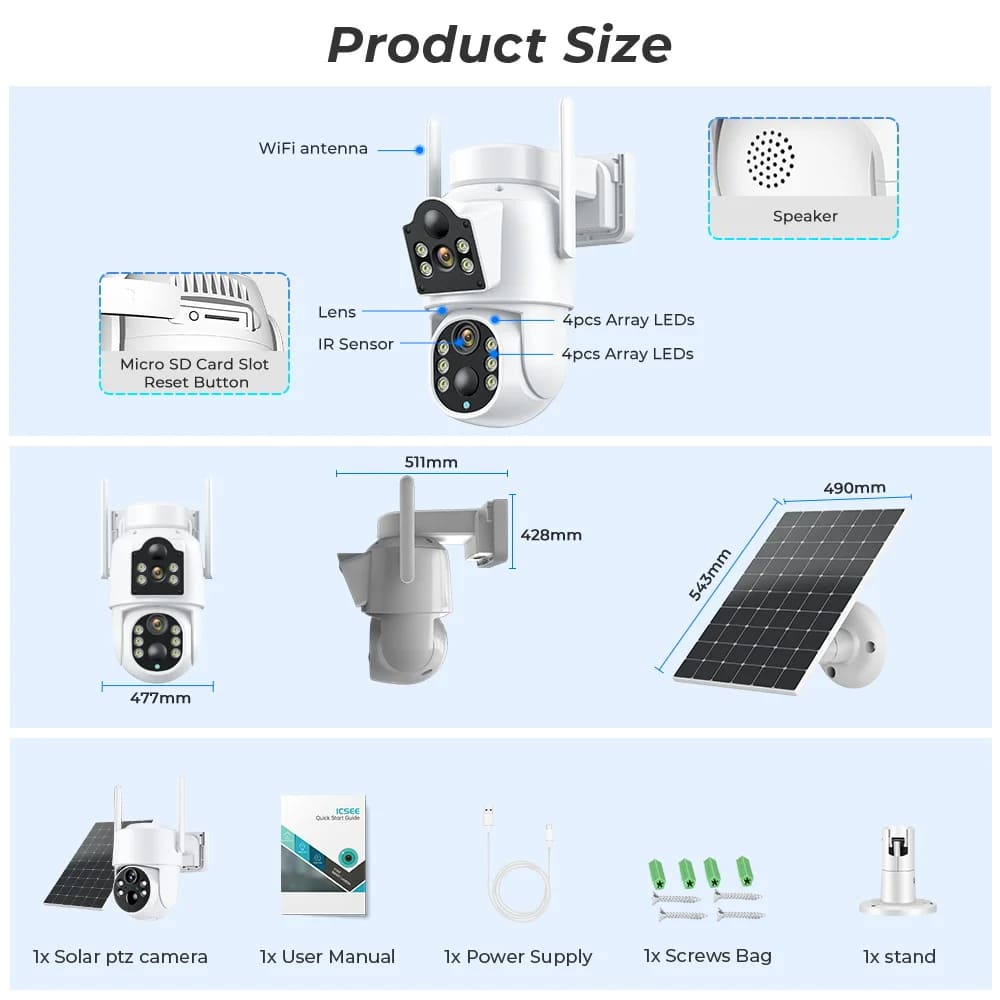 Благодаря горизонтали 320 ° и вертикали 90 ° вы можете удаленно управлять уличной камерой Wi-Fi и просматривать каждый уголок через свой мобильный телефон.