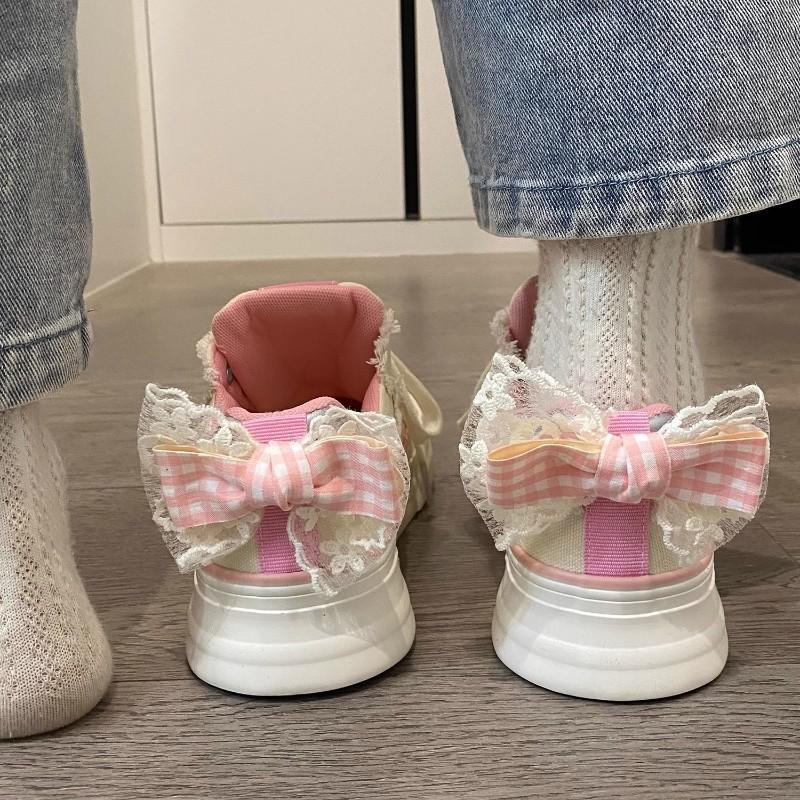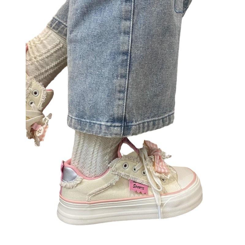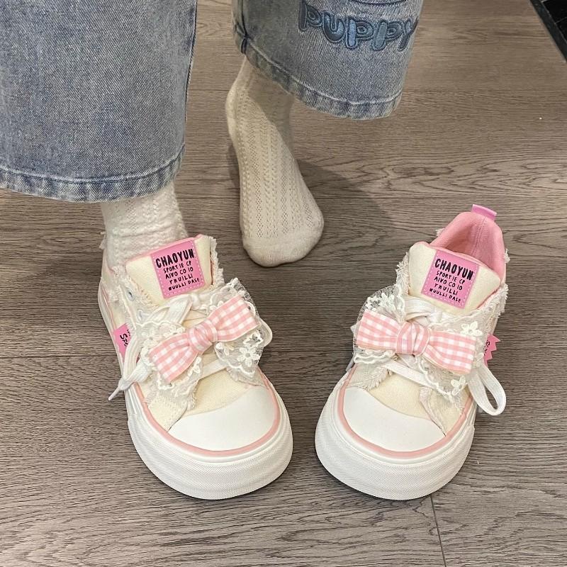 Модные розовые парусиновые туфли для женщин весна-осень новые дизайнерские модные повседневные кружевные туфли с бантом на платформе женские вулканизированные туфли