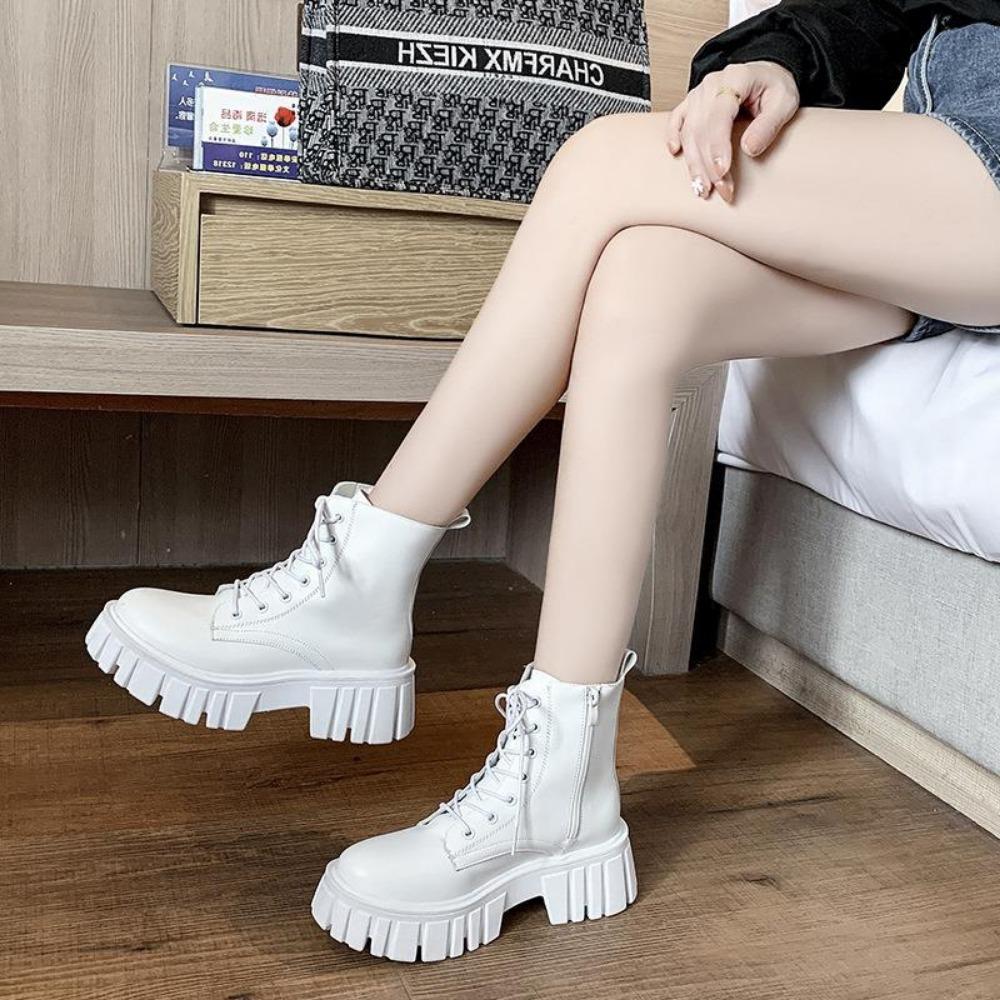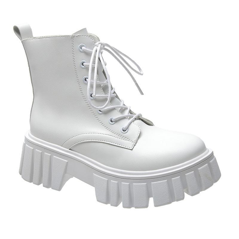 Модные ботильоны из искусственной кожи в британском стиле для женщин, осень-зима, новые модные повседневные туфли, женские черные и белые ботинки на платформе для женщин