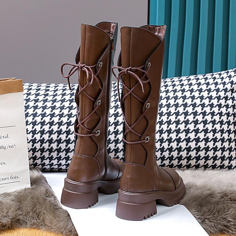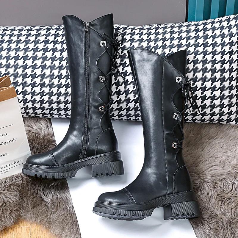 Модные сапоги из коровьей кожи на платформе в стиле вестерн-ковбой, рыцарские сапоги для женщин, дизайнерская обувь на мягкой подошве, модные сапоги до колена для женщин