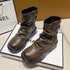 Модные дизайнерские ботинки на платформе с пряжкой для женщин, осенне-зимняя женская обувь с мягкой подошвой, модные повседневные кожаные мотоциклетные ботинки для женщин