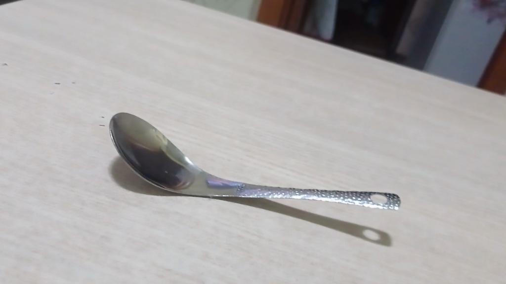 Очень тонкая, как фольга! Грубая штамповка, можно губы порезать, пришлось шкуркой обработать! Пойдёт разве как мерная ложка. Не рекомендую к покупке. Цена ей максимум 20 рублей.