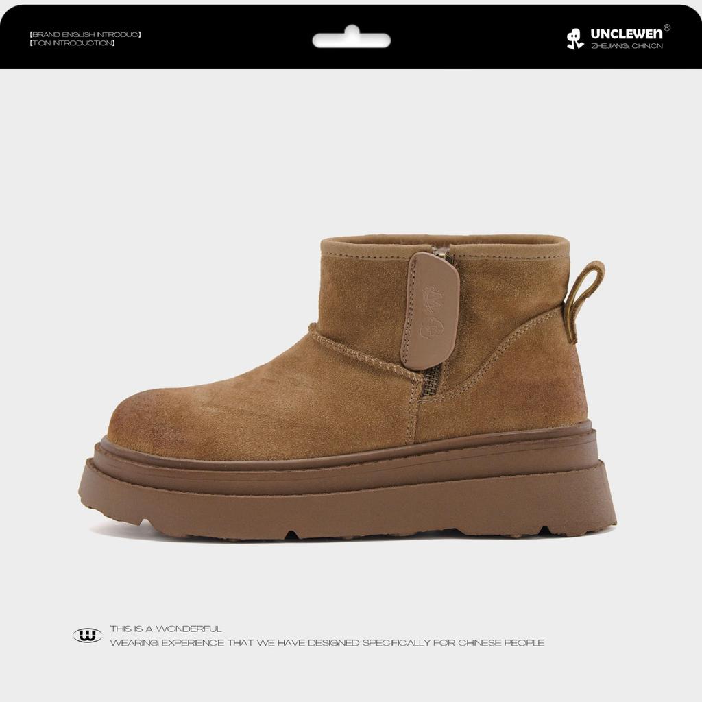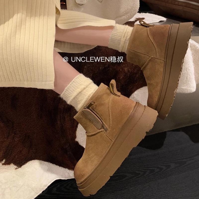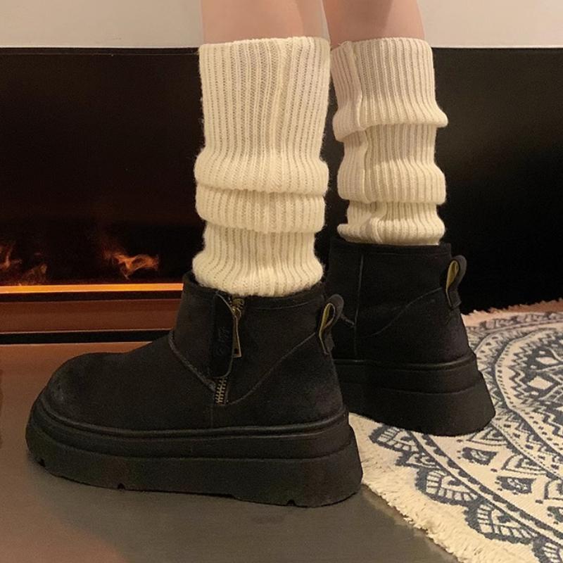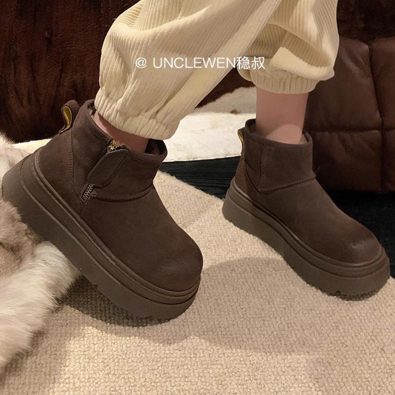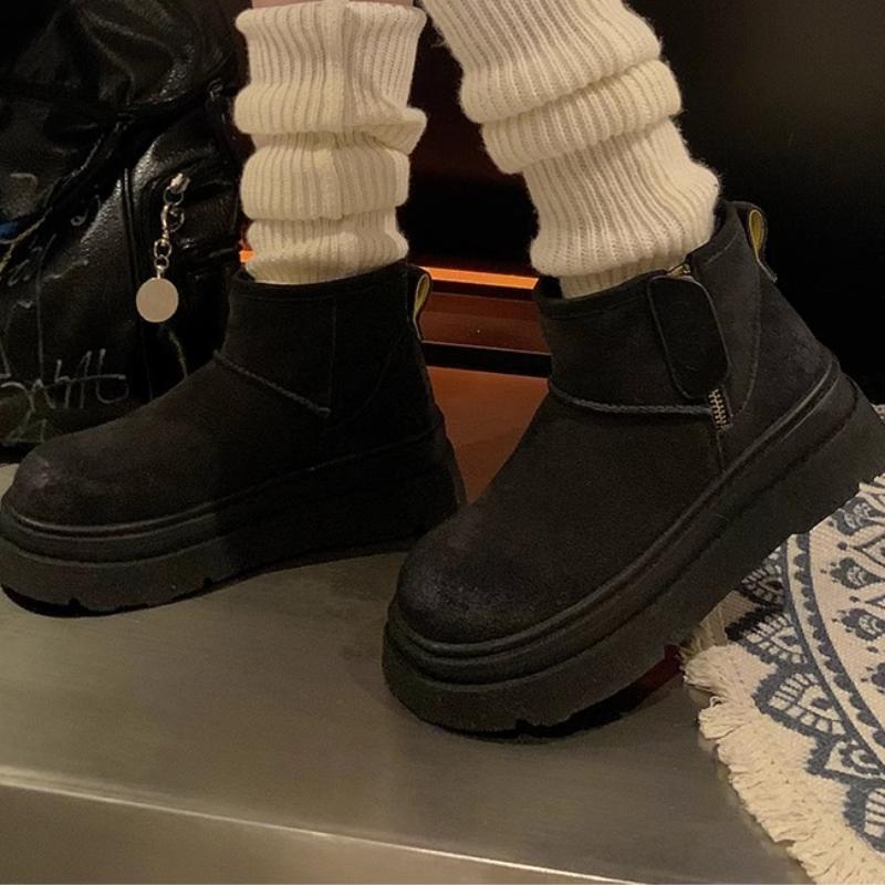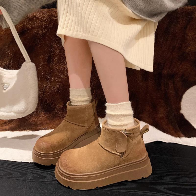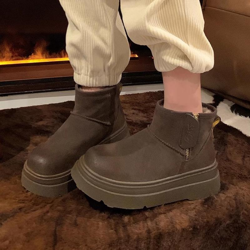 Модная женская обувь 2024 года, женские сапоги-туфли с круглым носком, теплые, из плотного плюша с начесом, на среднем каблуке, водонепроницаемые, простые, для снега