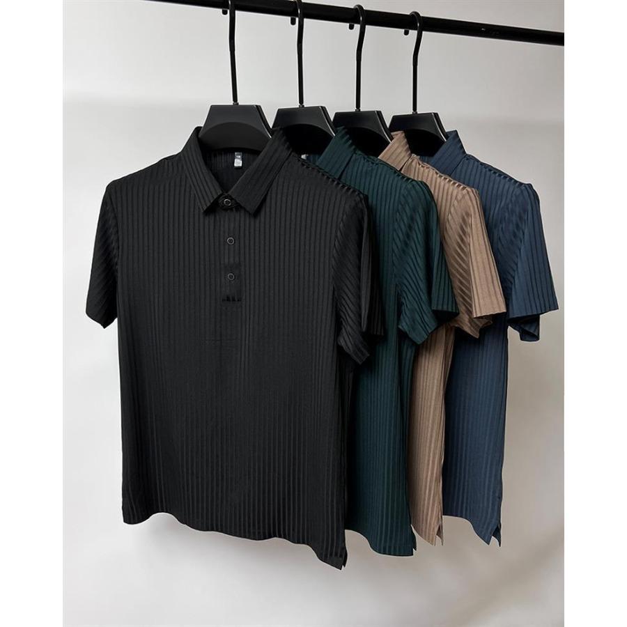 Летняя рубашка поло с воротником в полоску, мужская спортивная рубашка поло, верх