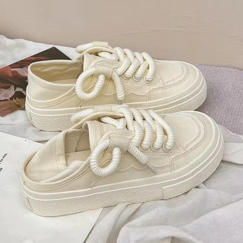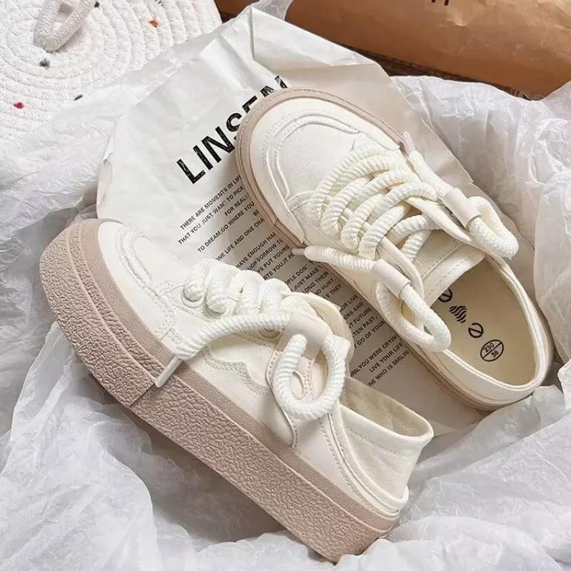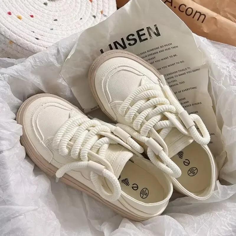 Кроссовки на шнуровке из вулканизированной стали, осенние женские белые парусиновые кроссовки для студентов с круглым носком на плоской подошве, повседневные, для бега на открытом воздухе, Zapatillas