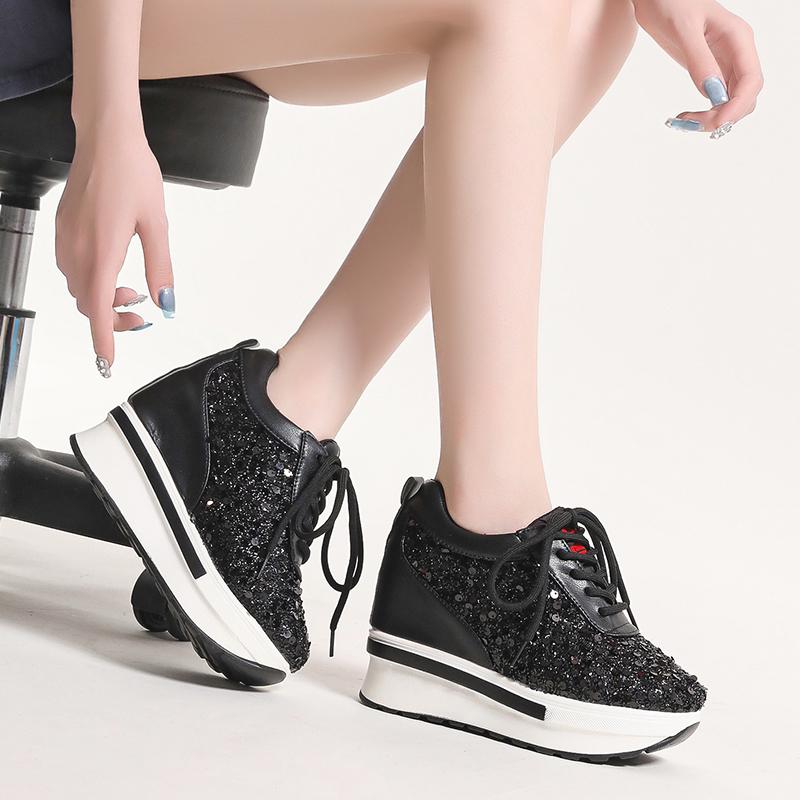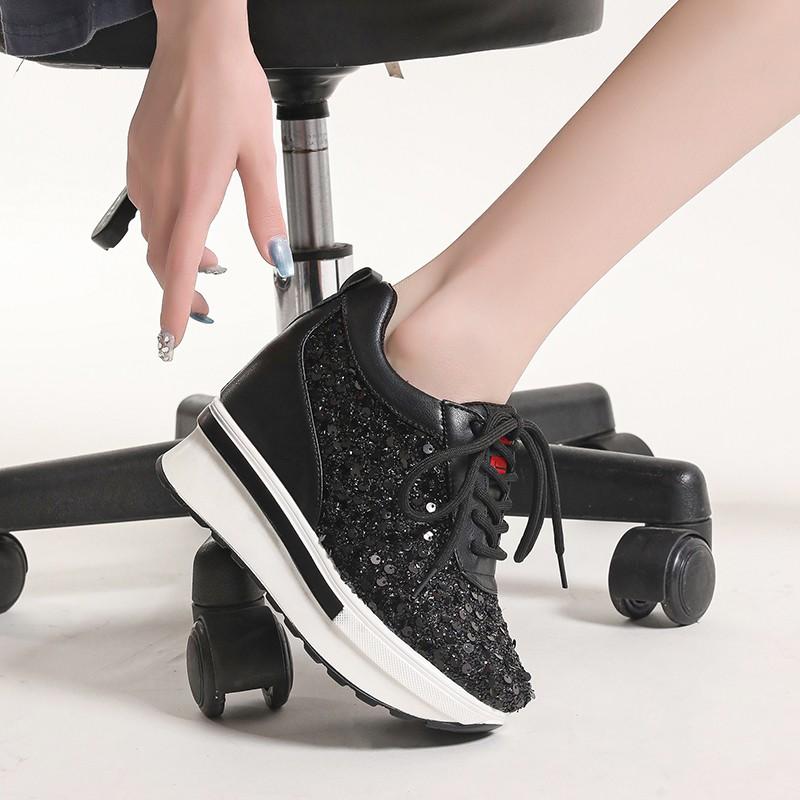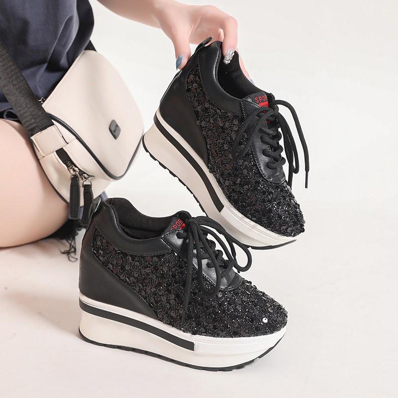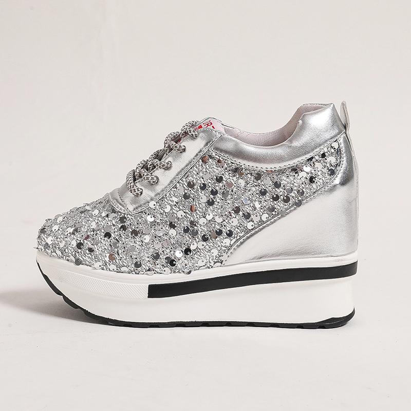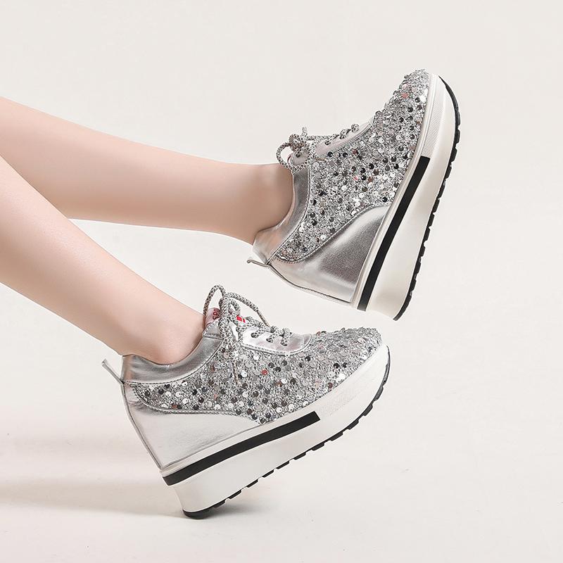 Серебряные блестки женские кроссовки осень 2024 года новые супер высокие каблуки женские вулканизированные туфли модные универсальные туфли на платформе