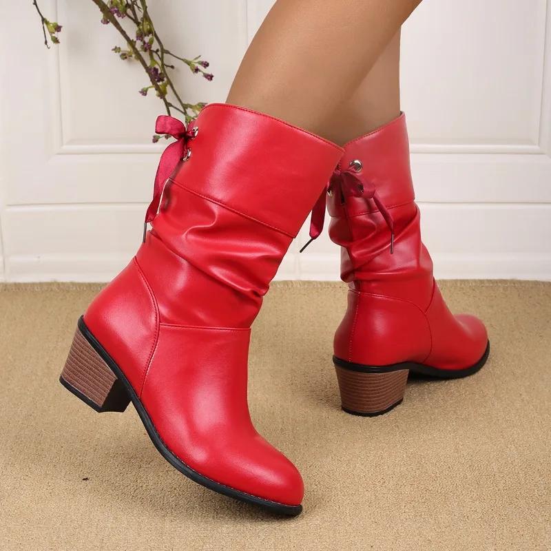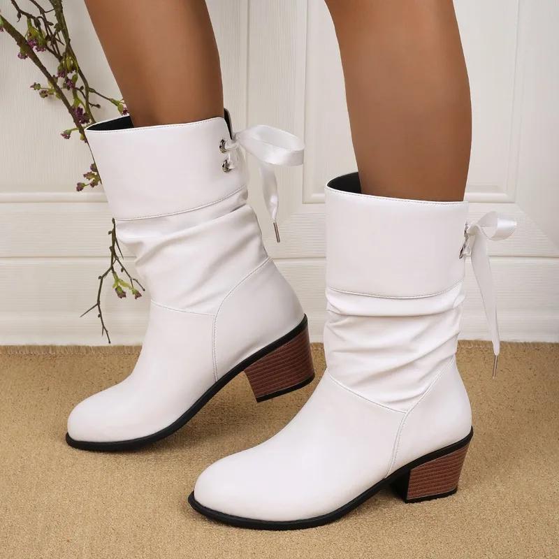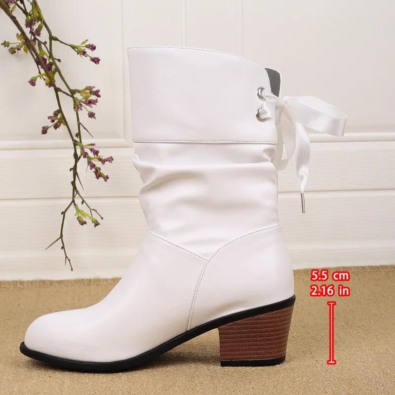 Высококачественная женская обувь 2024 Последняя модель Задняя шнуровка Модные женские сапоги Модные и простые белые сапоги до середины икры