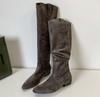 2024 Новый Стиль Кучи Сапог Заостренный Носок Квадратный Каблук Замша Римский Стиль Коричневые Длинные Сапоги до Колена Женские Сапоги