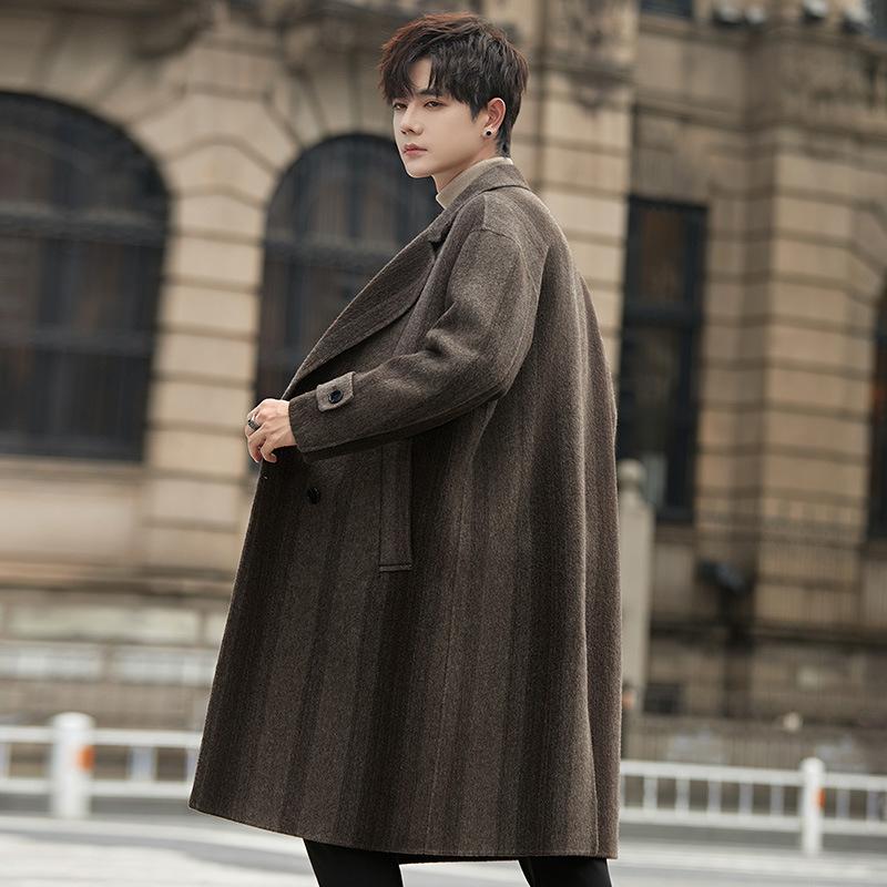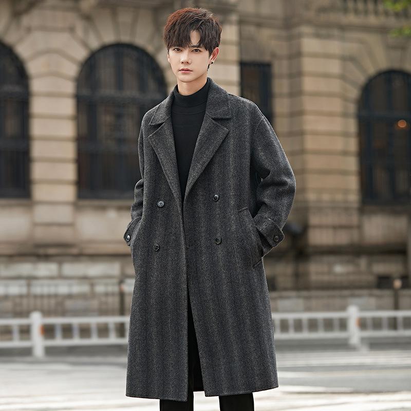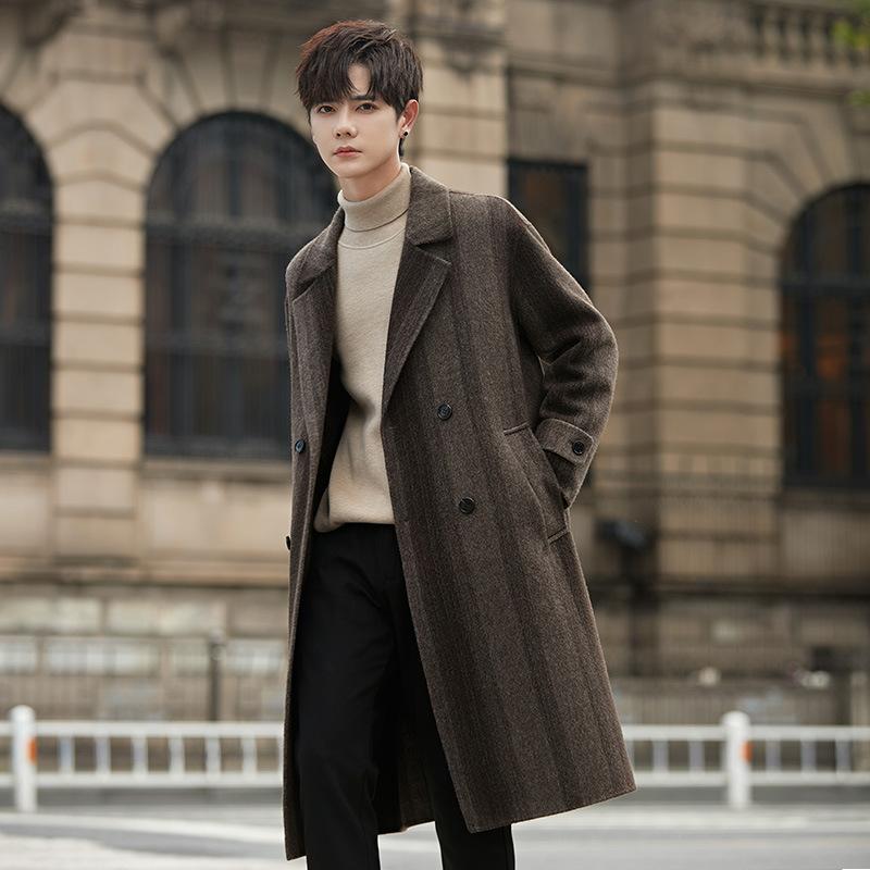 Осенне-зимнее мужское двухстороннее шерстяное пальто средней и длинной длины без кашемира, утепленное пальто длиной до колена