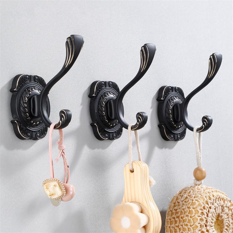 Tuqiu Антикварный резной крючок для халата в ванной, настенные крючки, алюминиевый крючок для кухонного полотенца, черный держатель для шляпы и сумки, крючок для одежды