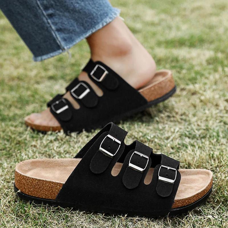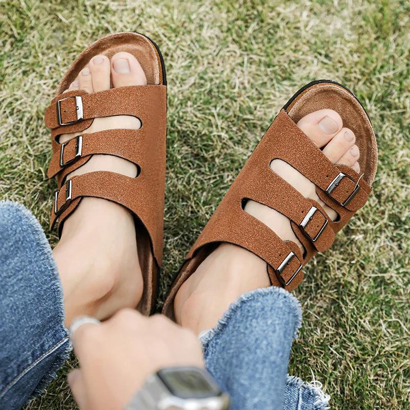 Высокое качество 2024 модные кожаные сандалии летние новые классические уличные тапочки для мужчин и женщин повседневные уличные пляжные плоские туфли C