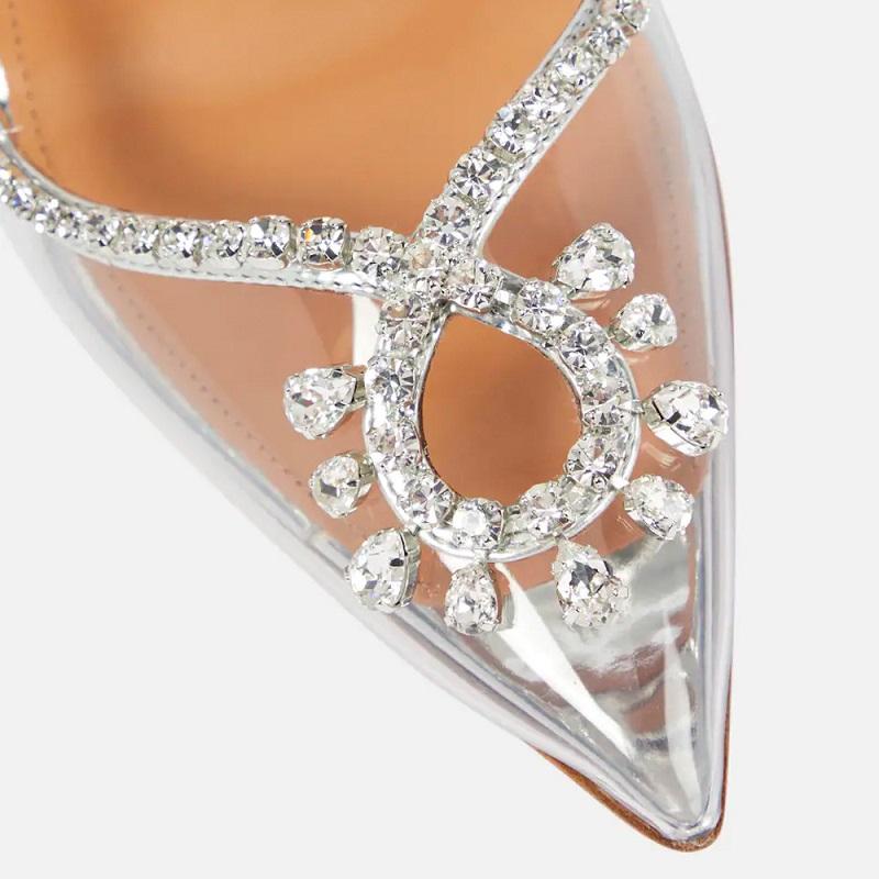 Туфли-лодочки из ПВХ, прозрачные, серебристые, со стразами, на высоком каблуке, женские, модные, с завязками на пятке, на тонком каблуке, для вечеринки, для невесты, свадебные босоножки